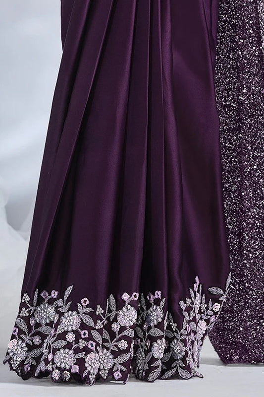 Purple Satin Pre-Stitched Saree with Belt – Elegant & Easy to Wear