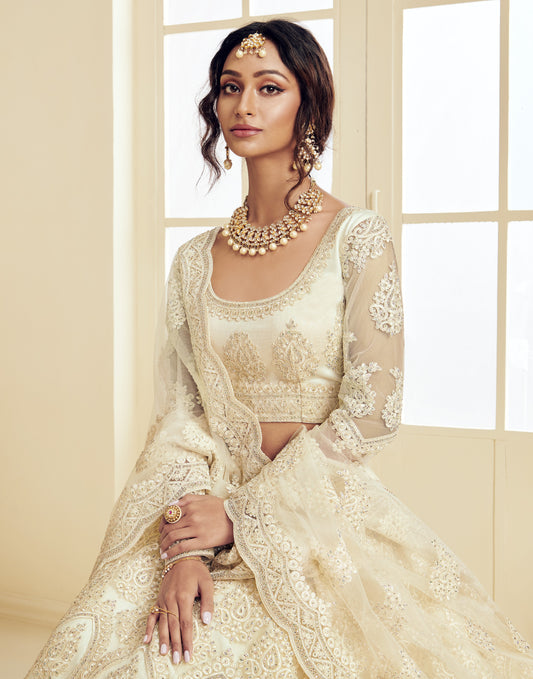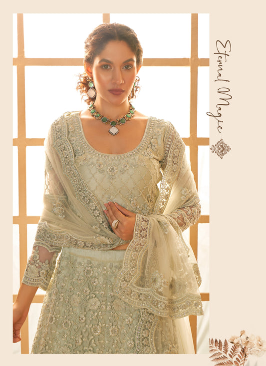 Mintgrünes Net-&-Silk-Lehenga-Set & Cutwork-Dupatta