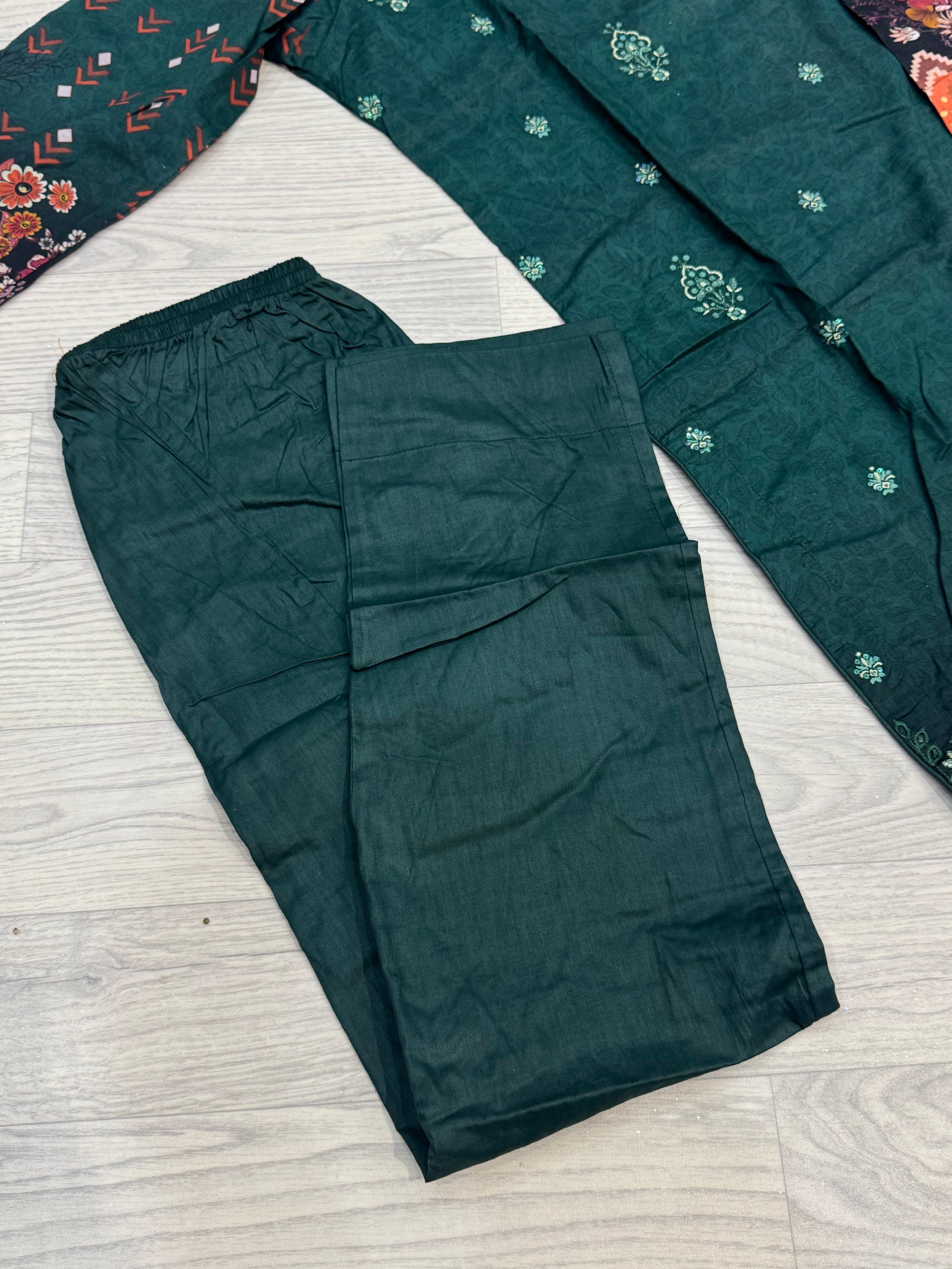 Dieses elegante 3-teilige Suit Set besteht aus Kameez, Hose und passender Schaal und ist die perfekte Wahl für warme Sommertage. Gefertigt aus hochwertigem Lawn-Material, überzeugt das Outfit durch seinen besonders dünnen, leichten und atmungsaktiven Stoff, der selbst bei hohen Temperaturen angenehm auf der Haut liegt.