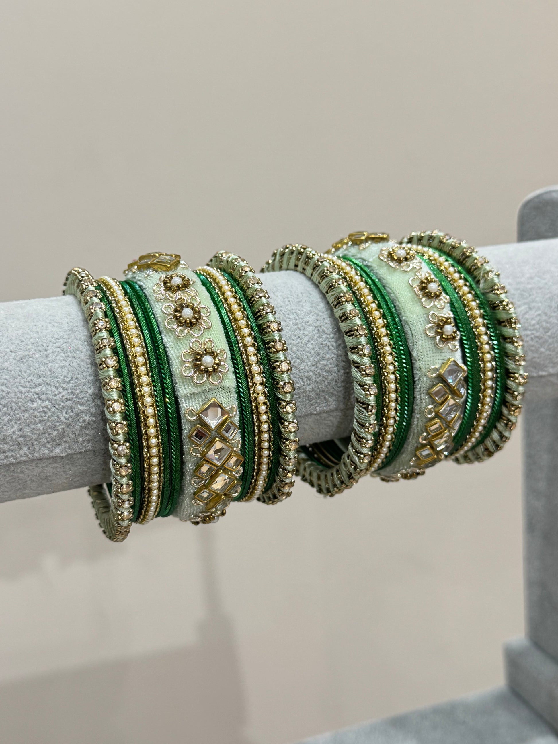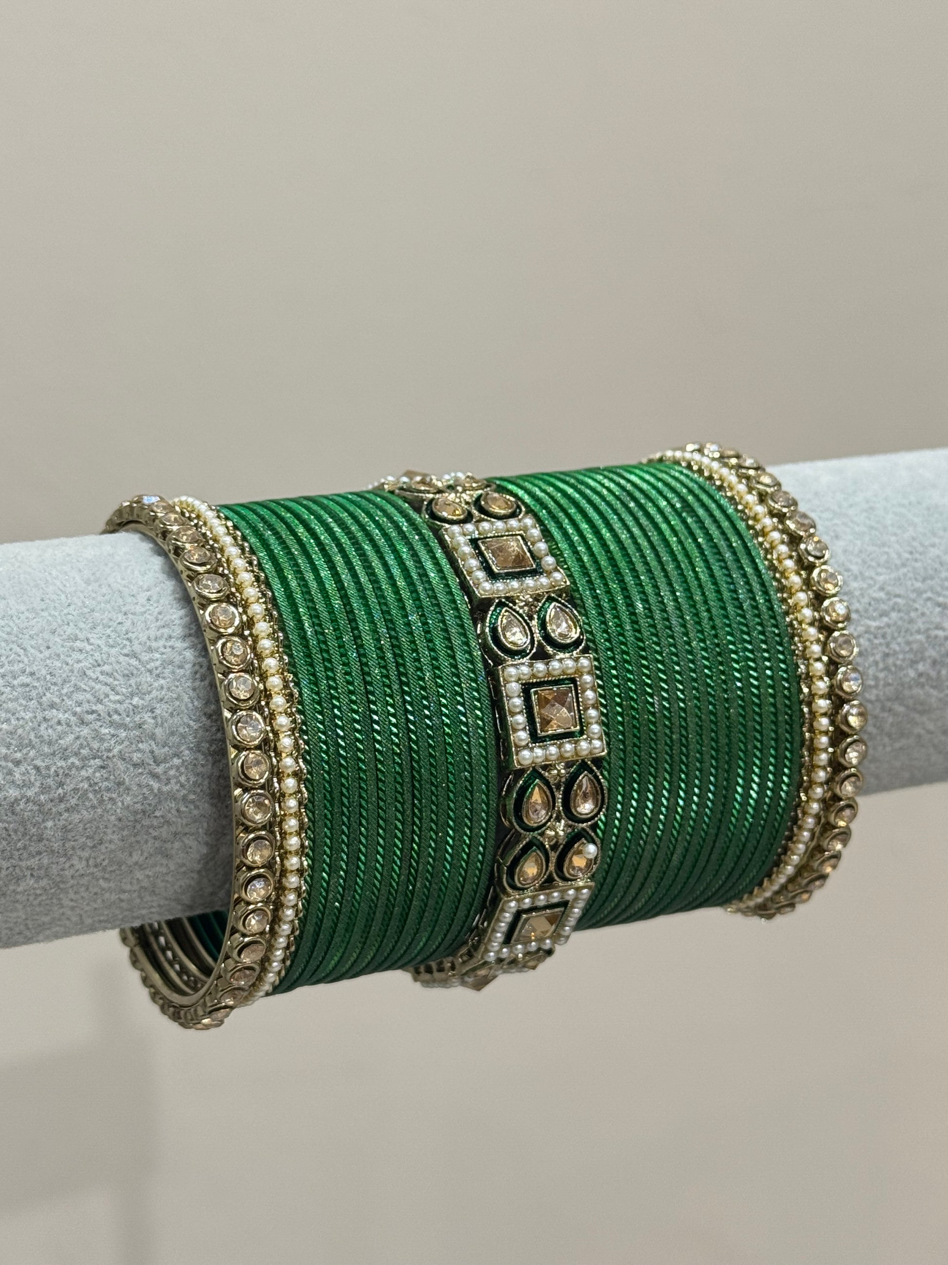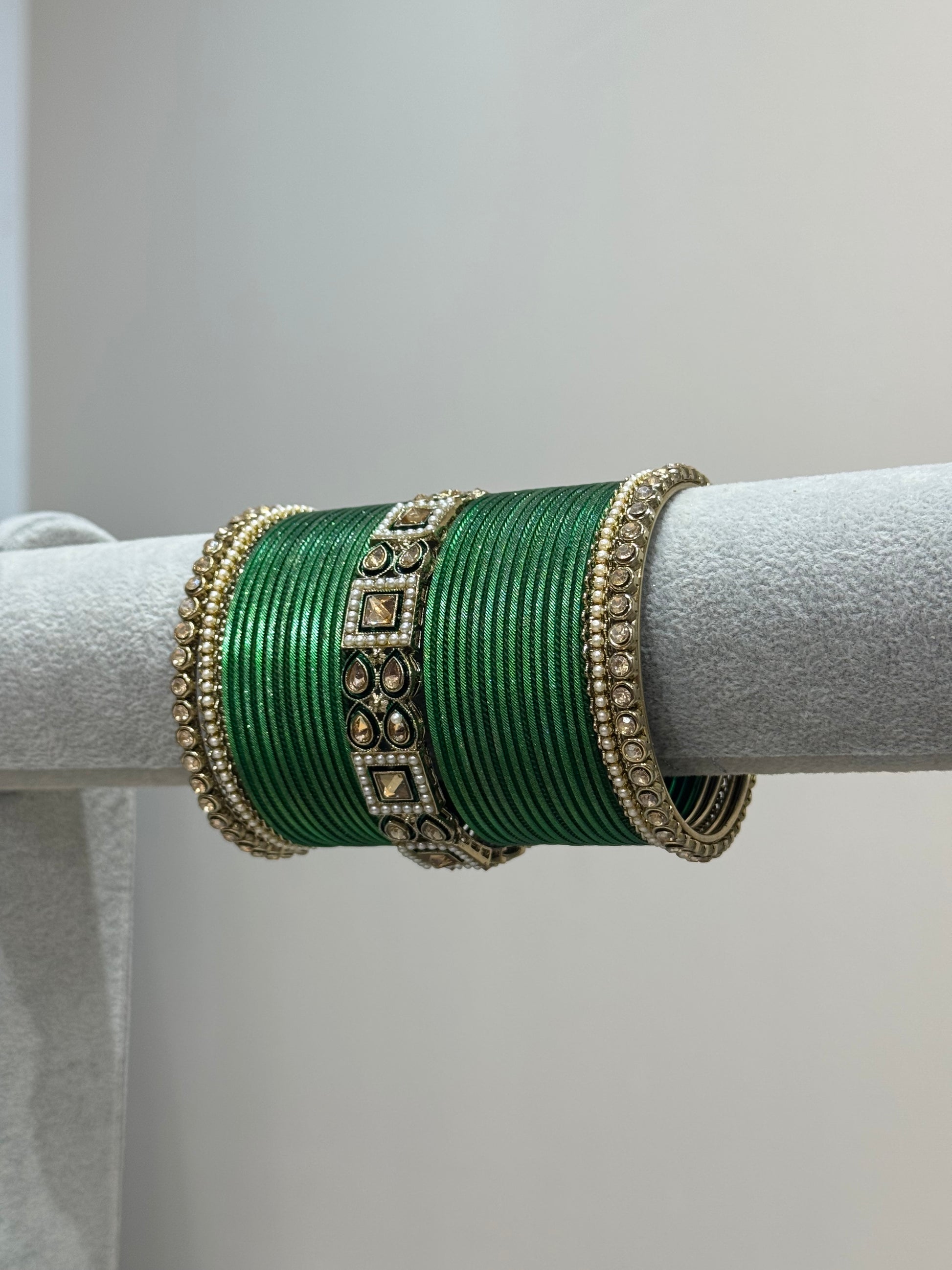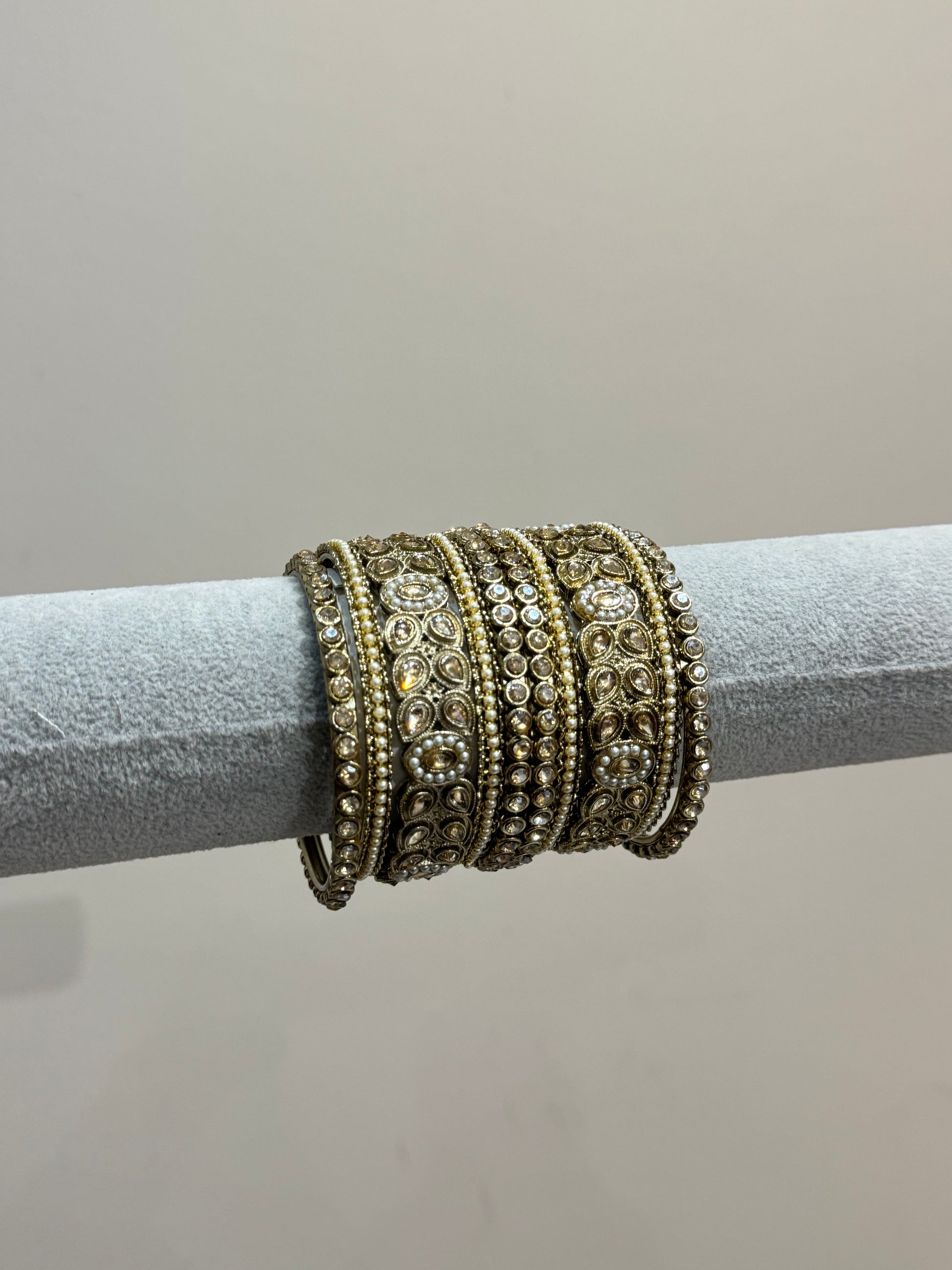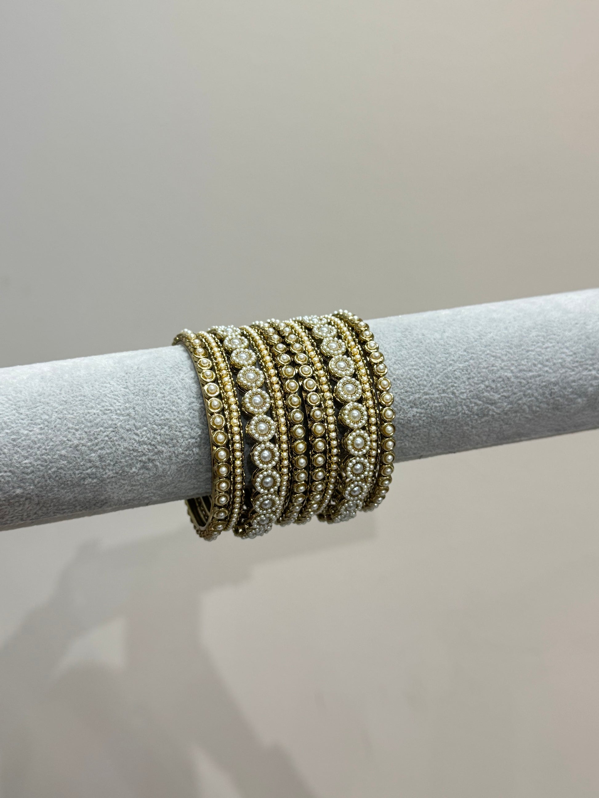 One set of bangles is one displayed until of bangles. Some photographs have 2 sets of bangles for presentation purposes. Unless specified otherwise, the price is for ONE set of of bangles only.