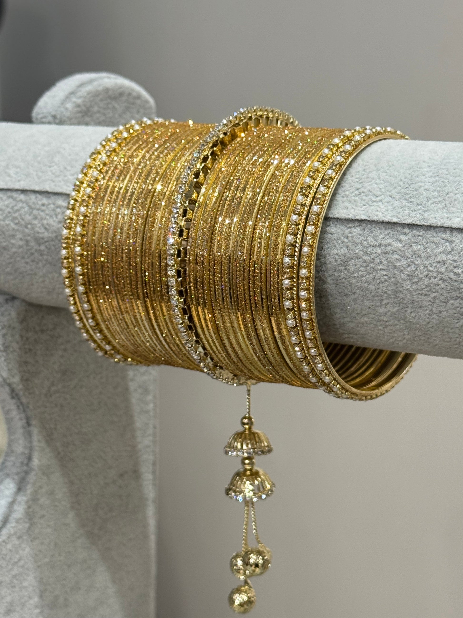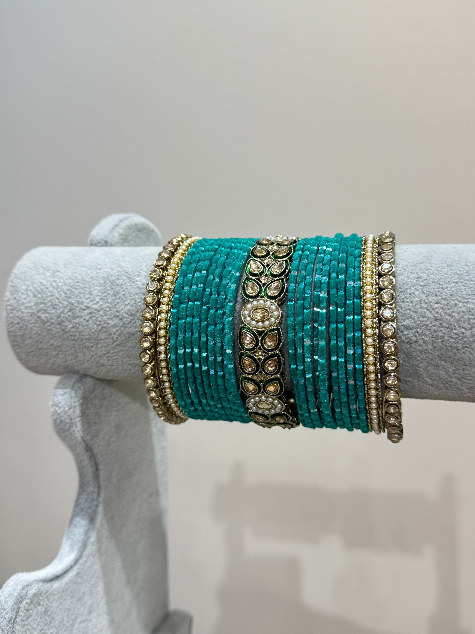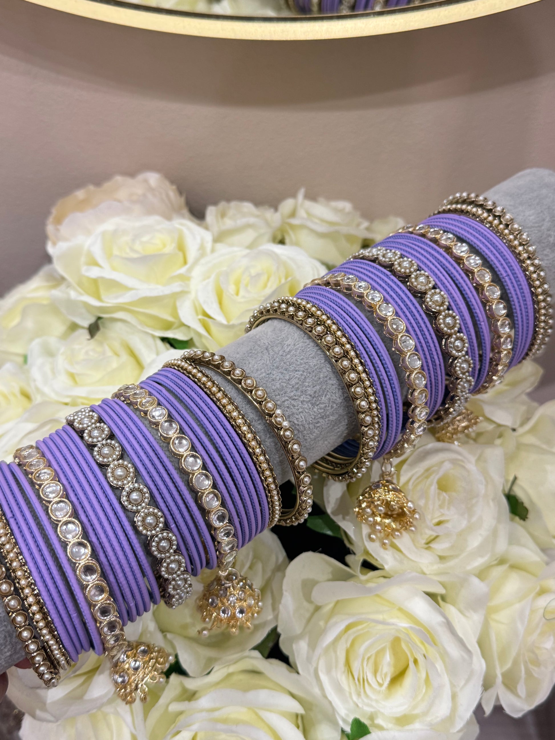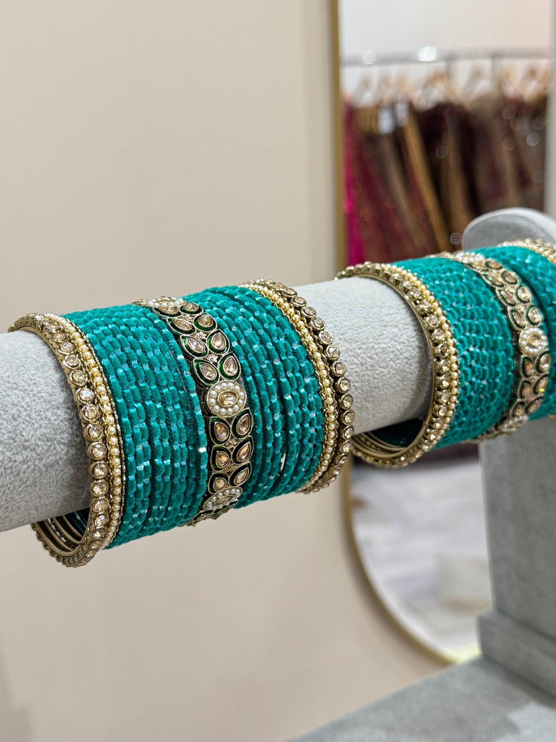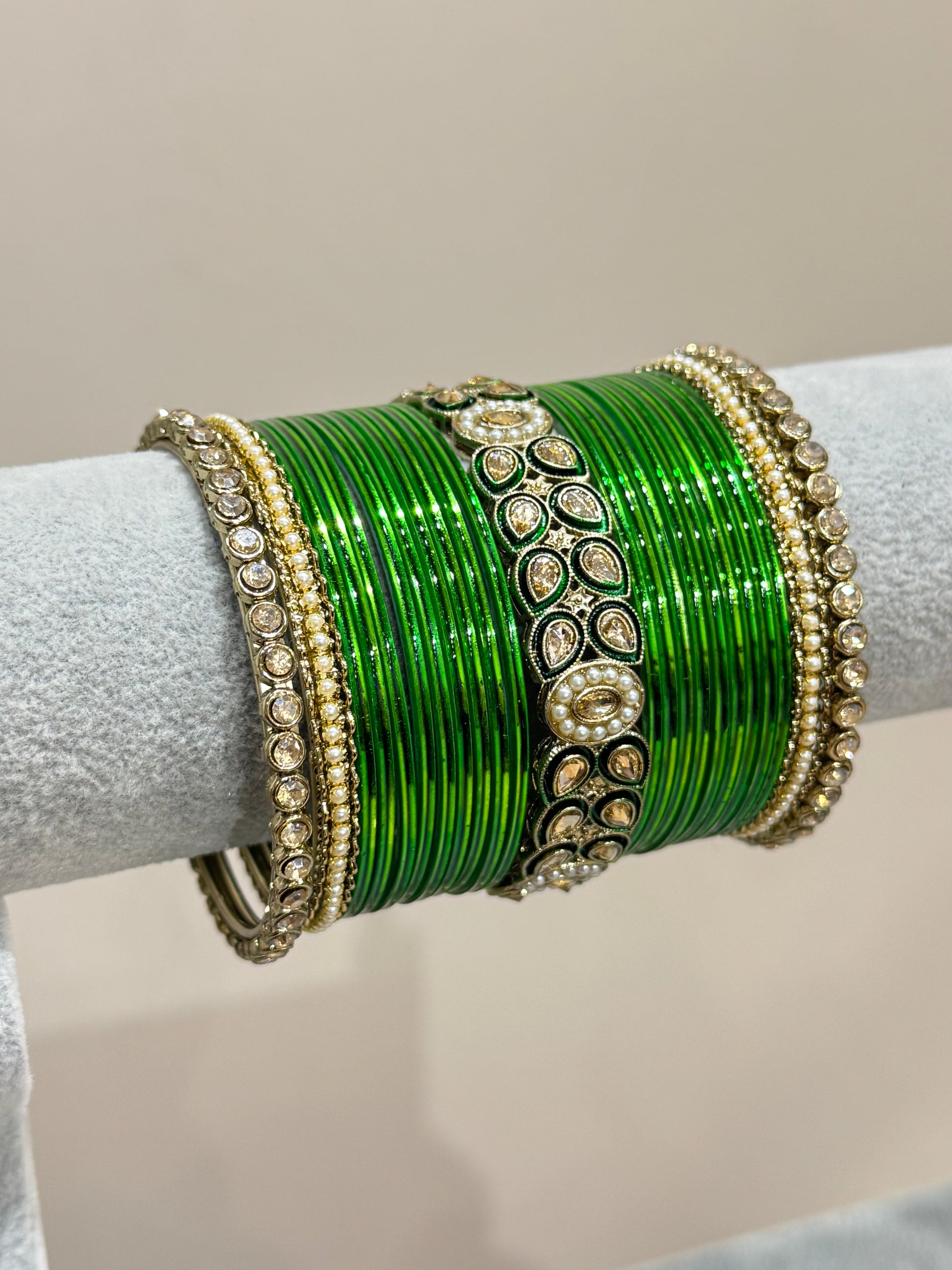 One set of bangles is one displayed until of bangles. Some photographs have 2 sets of bangles for presentation purposes. Unless specified otherwise, the price is for ONE set of of bangles only.