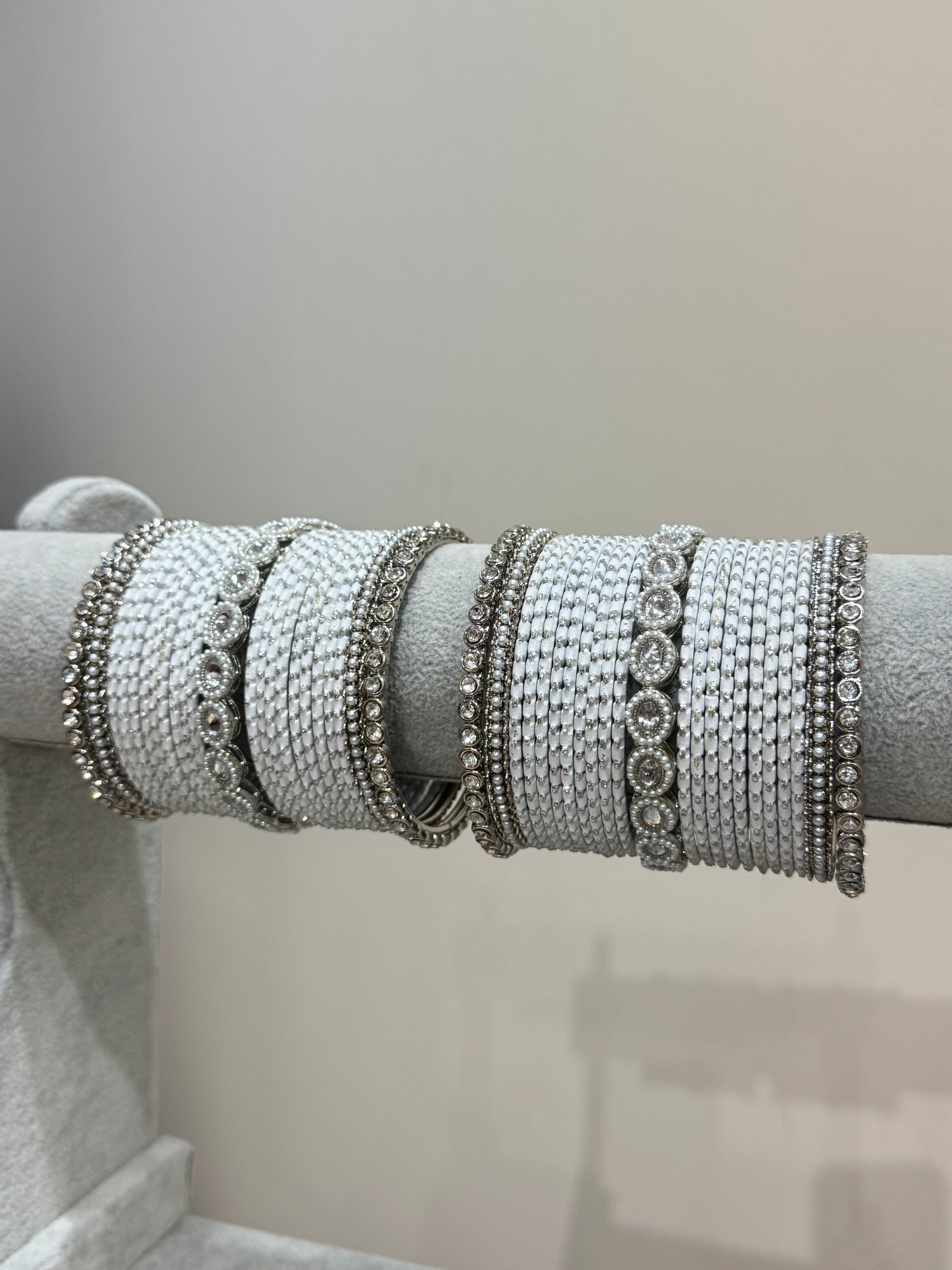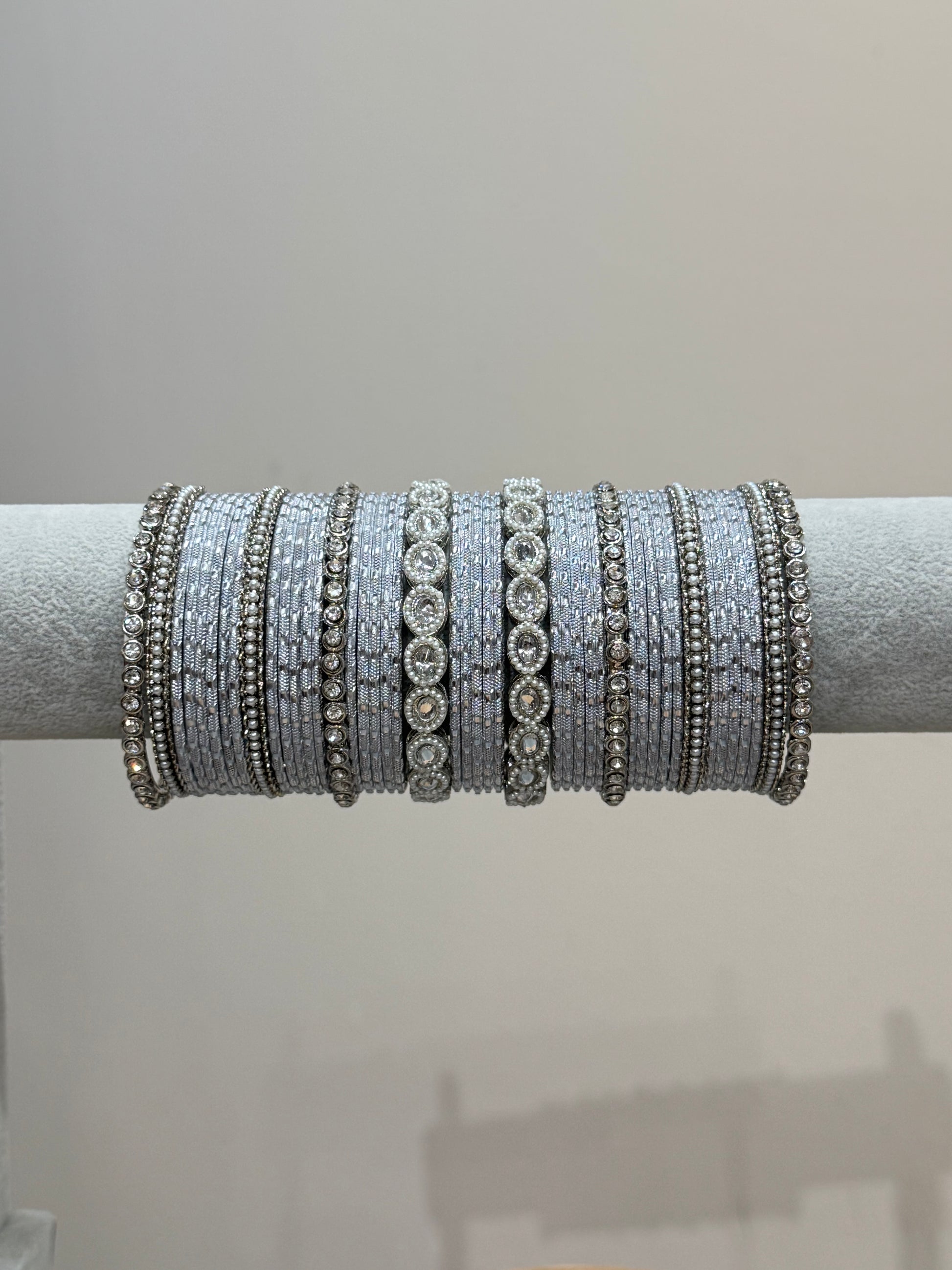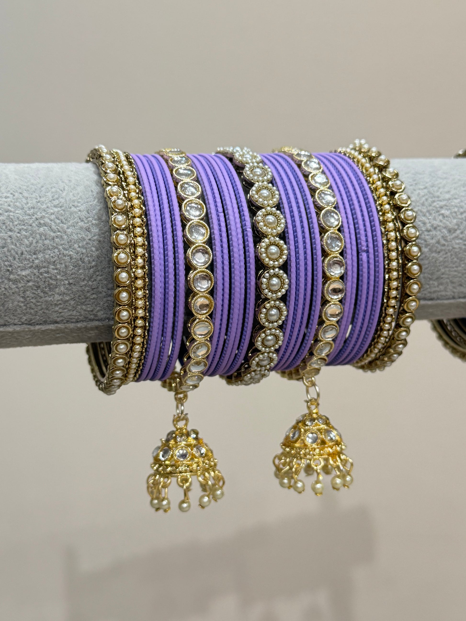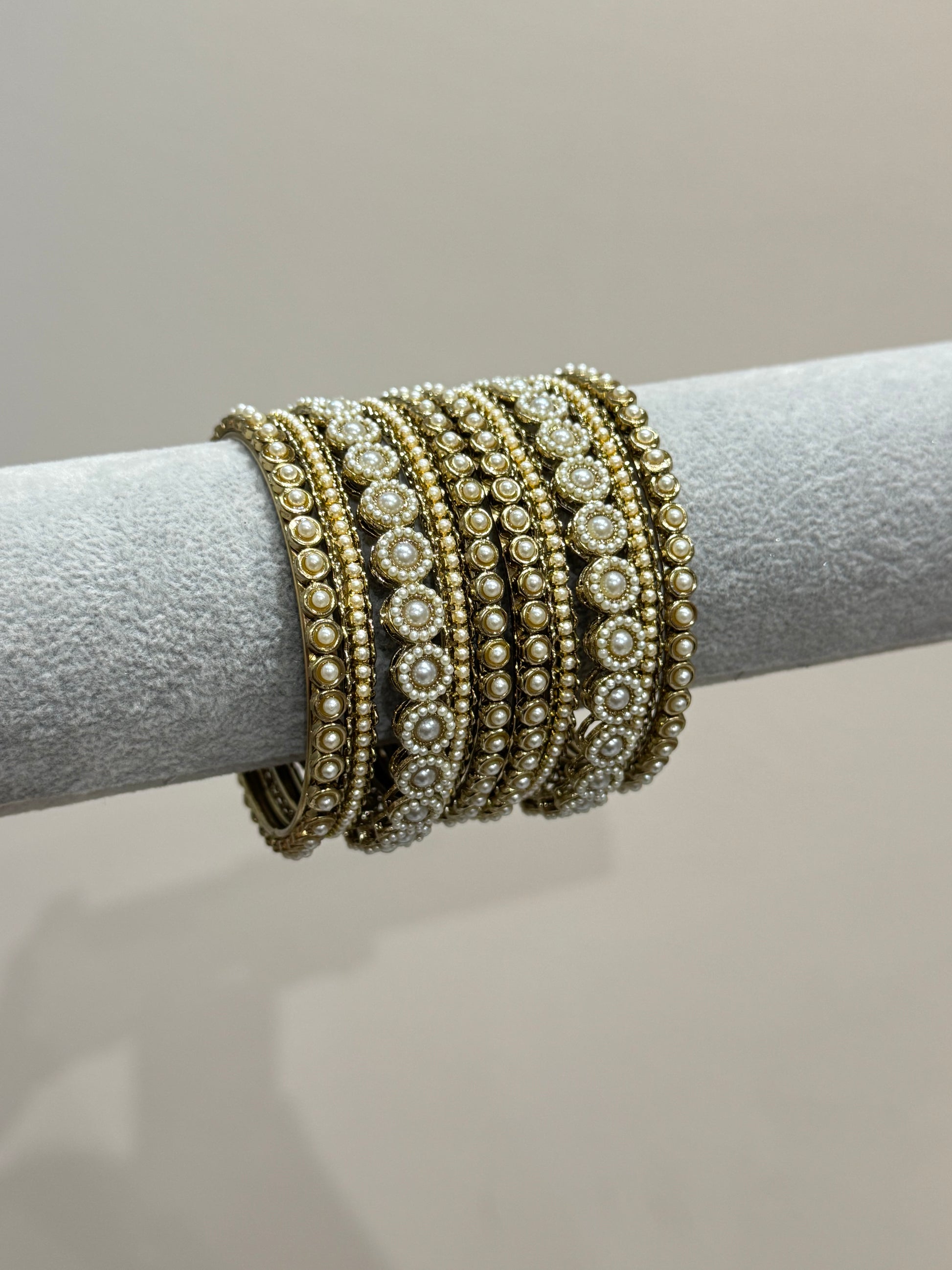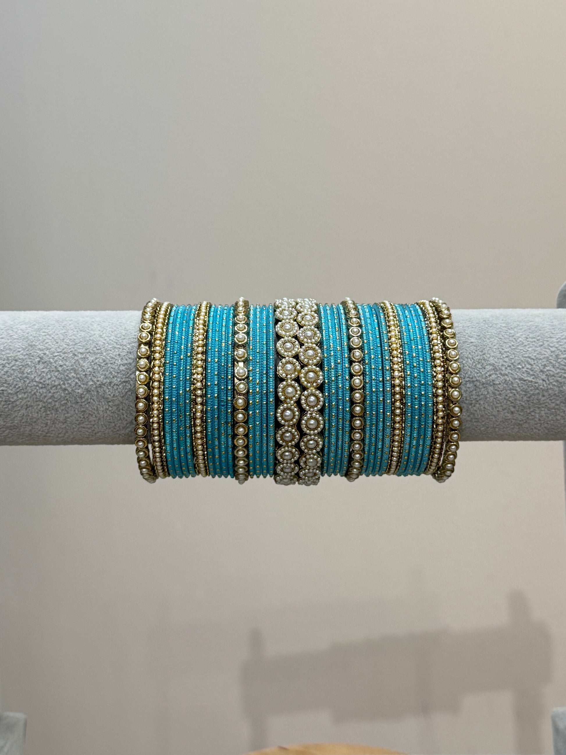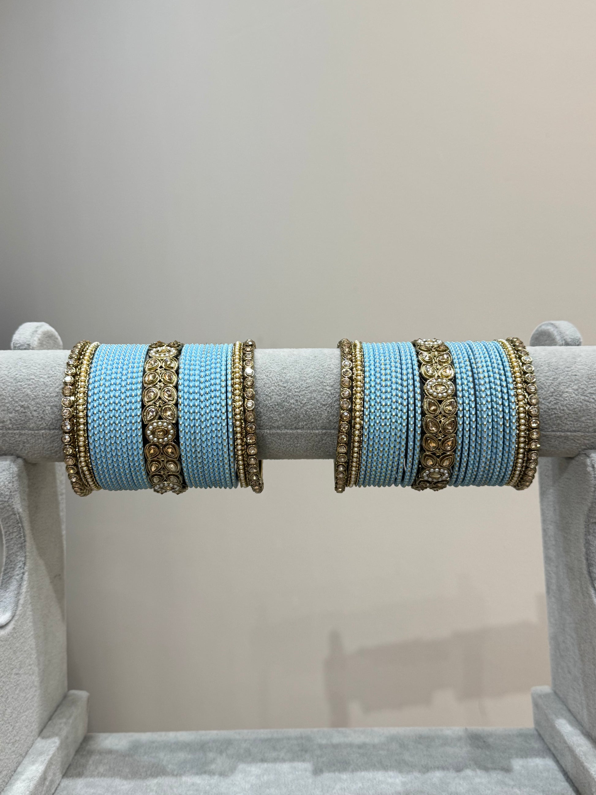One set of bangles is one displayed until of bangles. Some photographs have 2 sets of bangles for presentation purposes. Unless specified otherwise, the price is for ONE set of of bangles only.