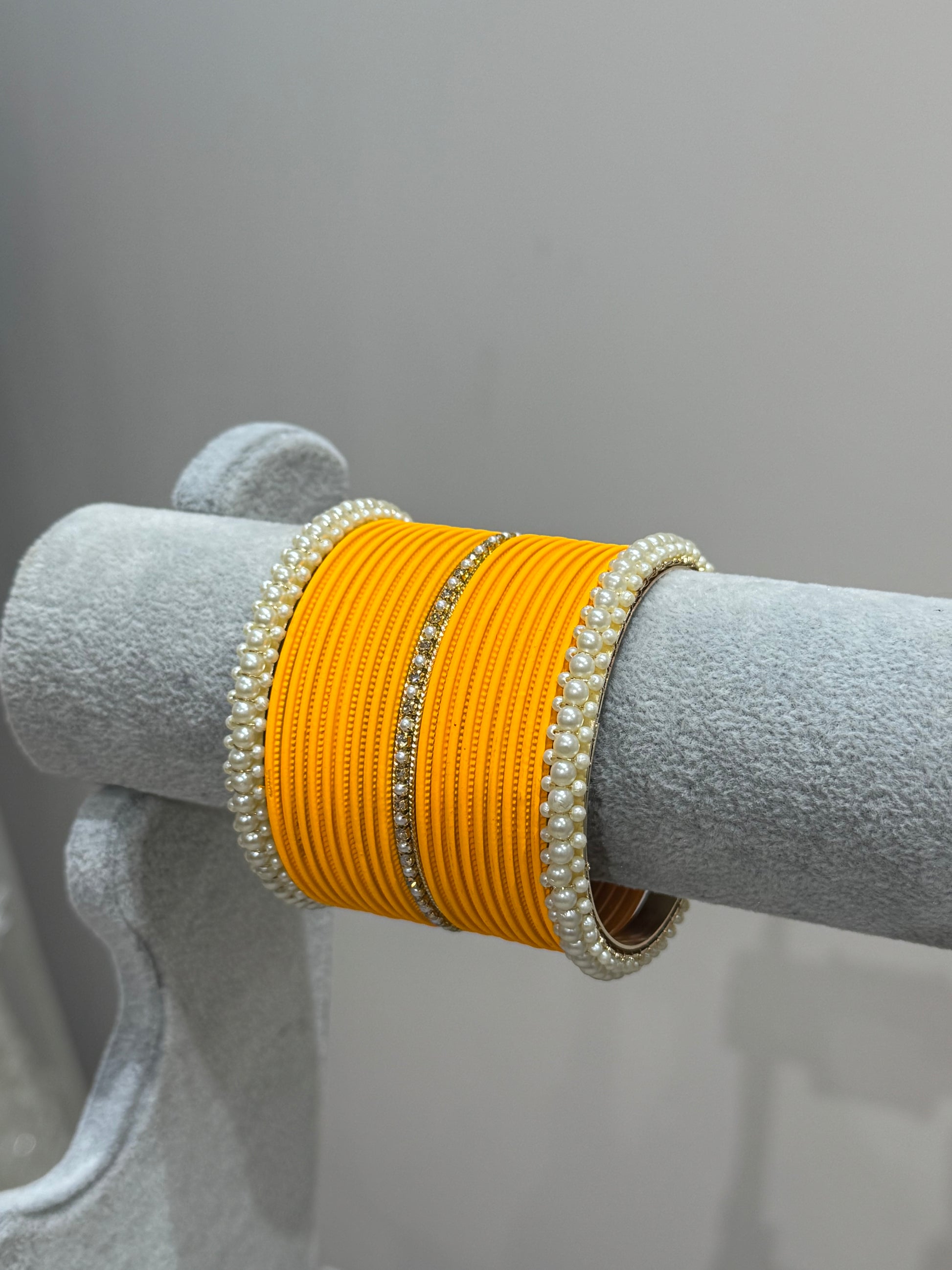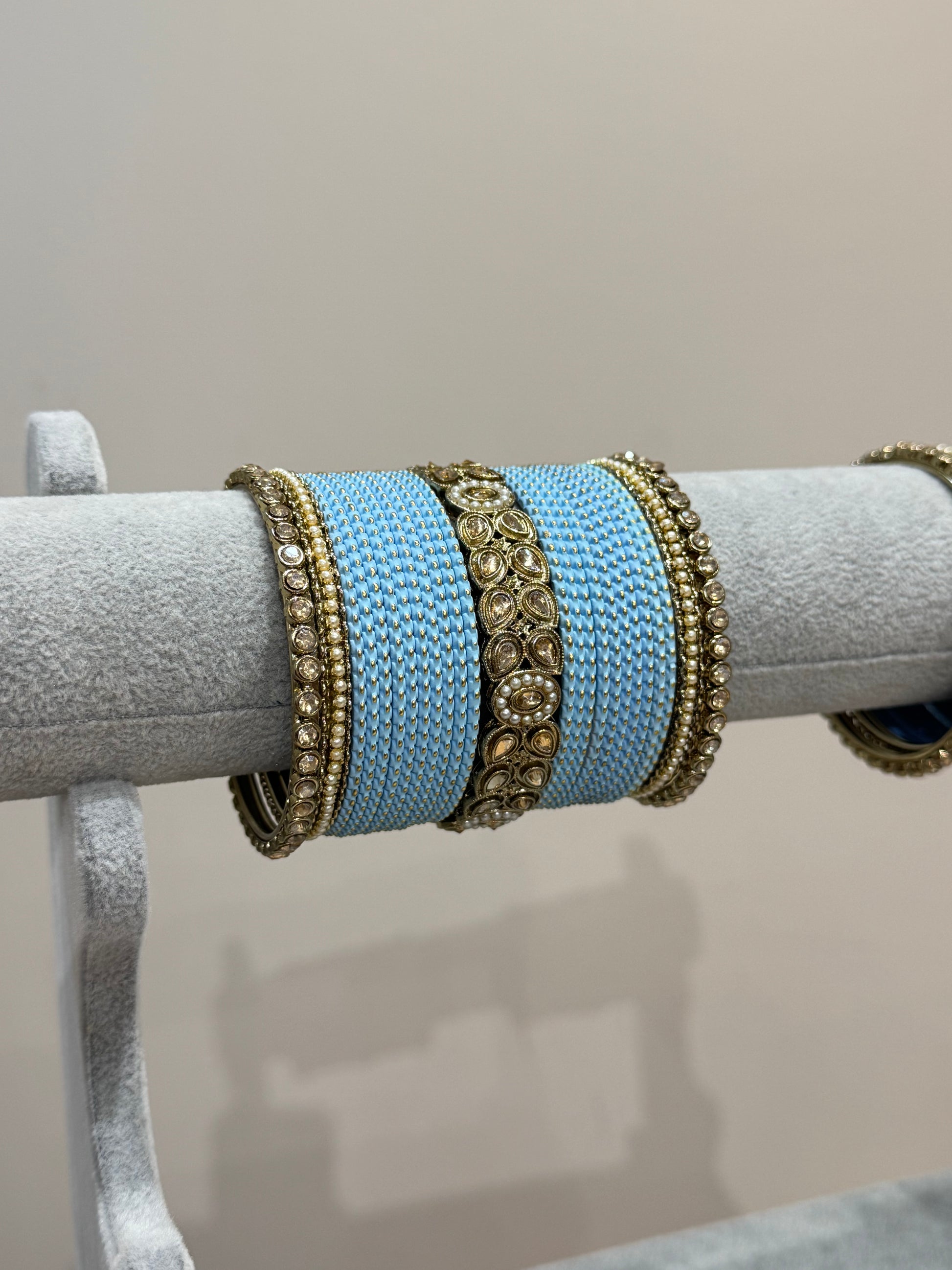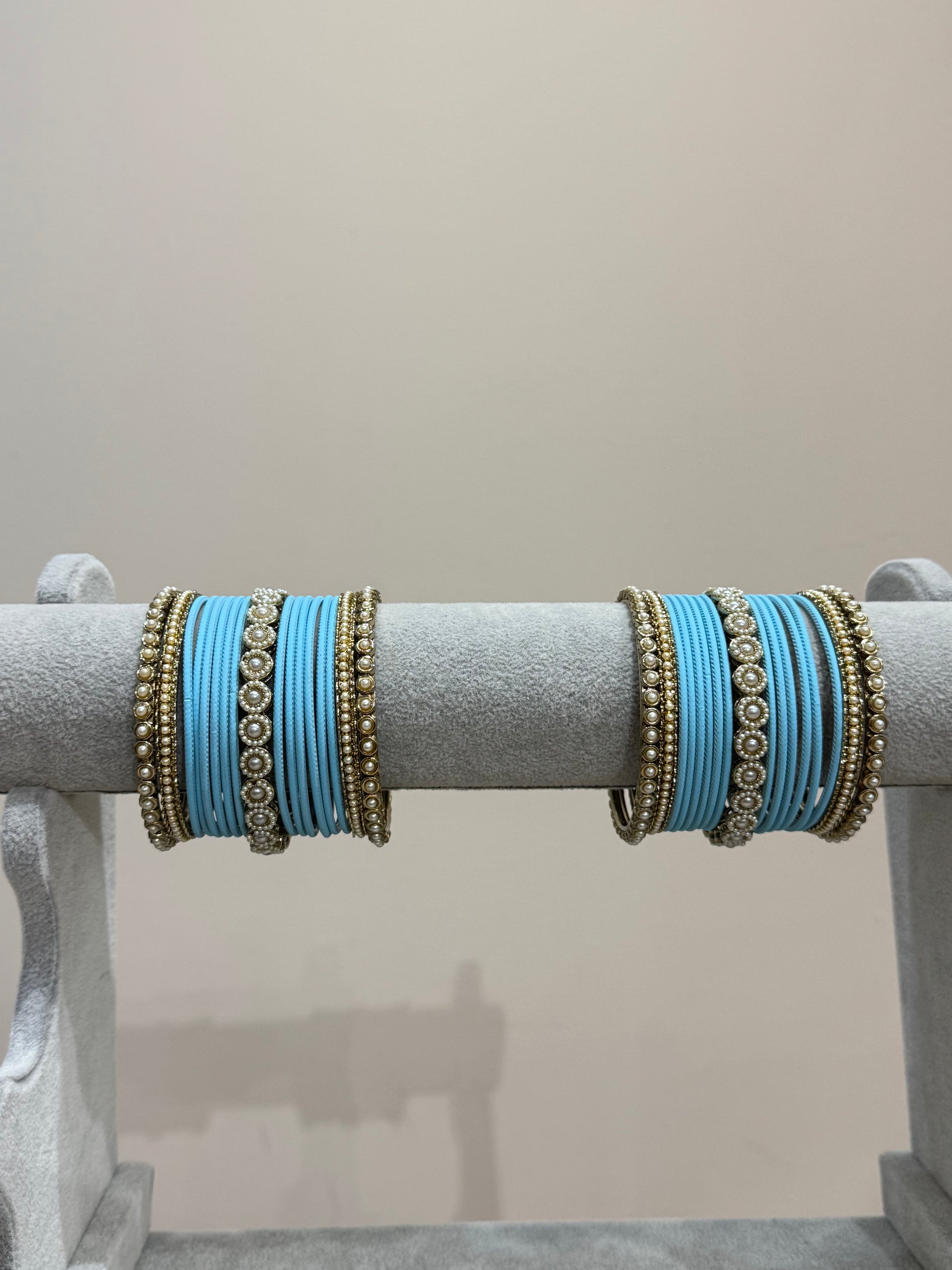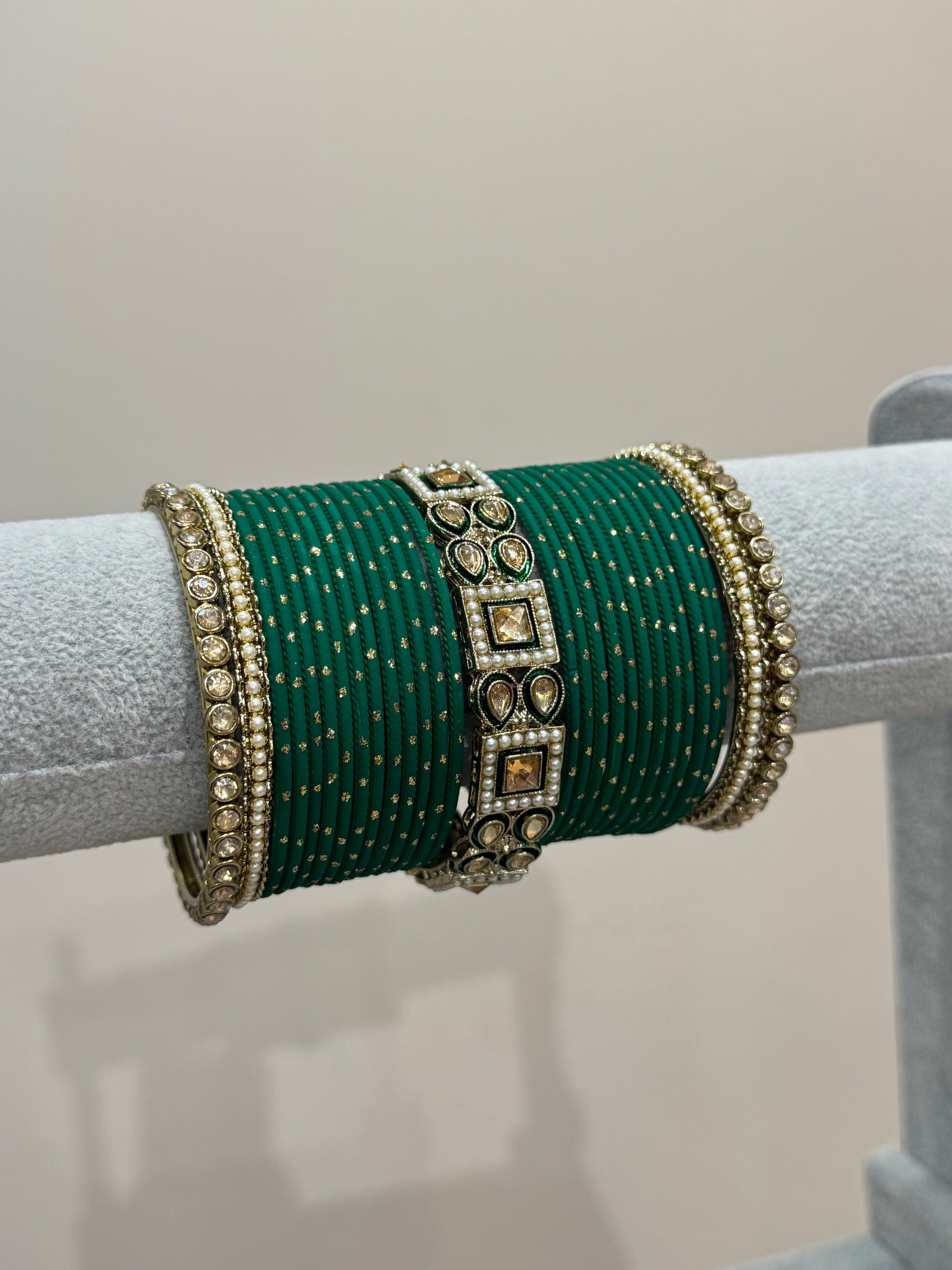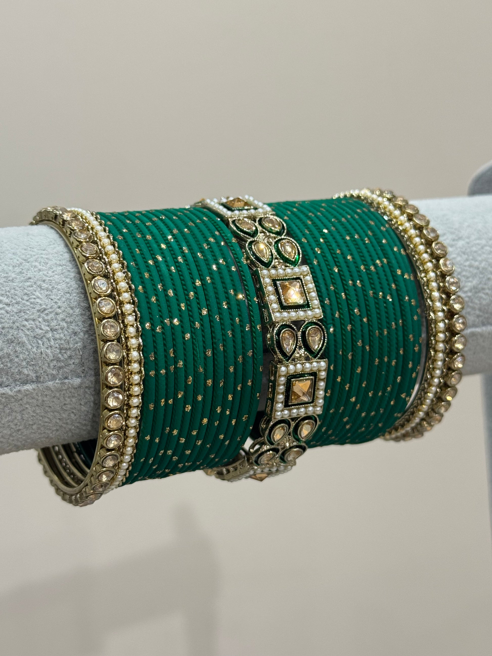 One set of bangles is one displayed until of bangles. Some photographs have 2 sets of bangles for presentation purposes. Unless specified otherwise, the price is for ONE set of of bangles only.