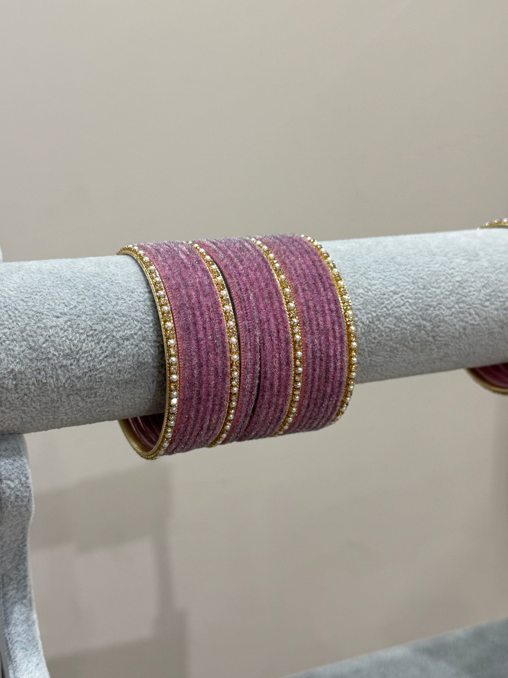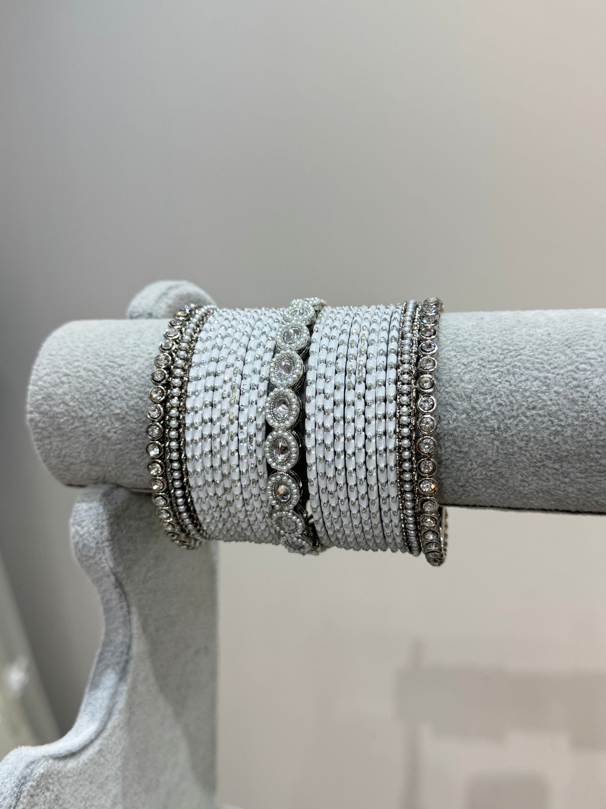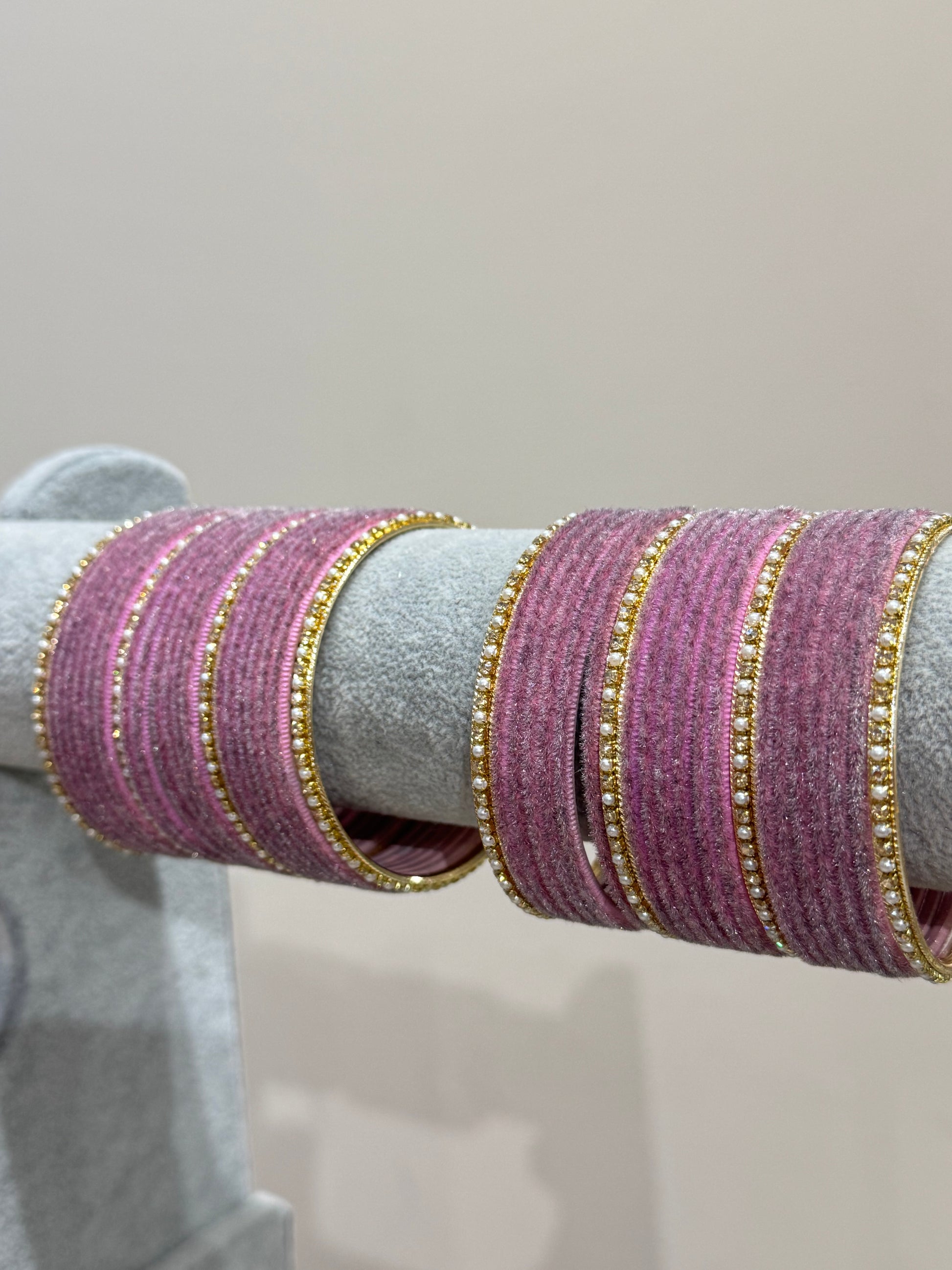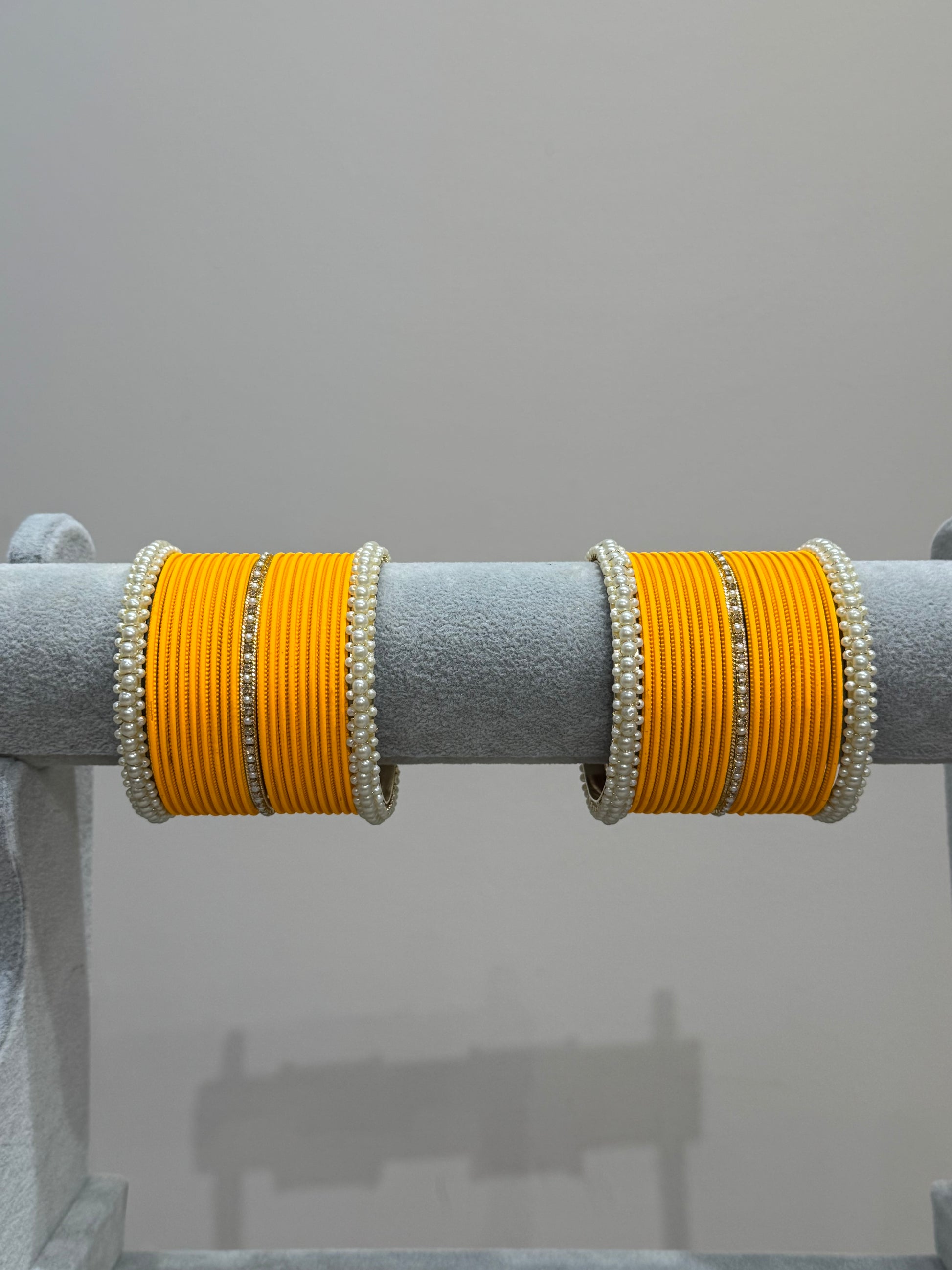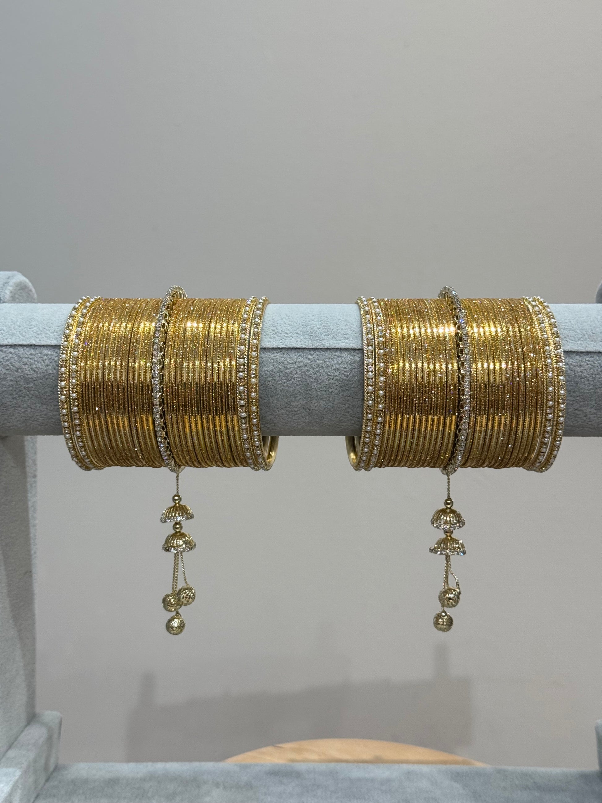 One set of bangles is one displayed until of bangles. Some photographs have 2 sets of bangles for presentation purposes. Unless specified otherwise, the price is for ONE set of of bangles only.