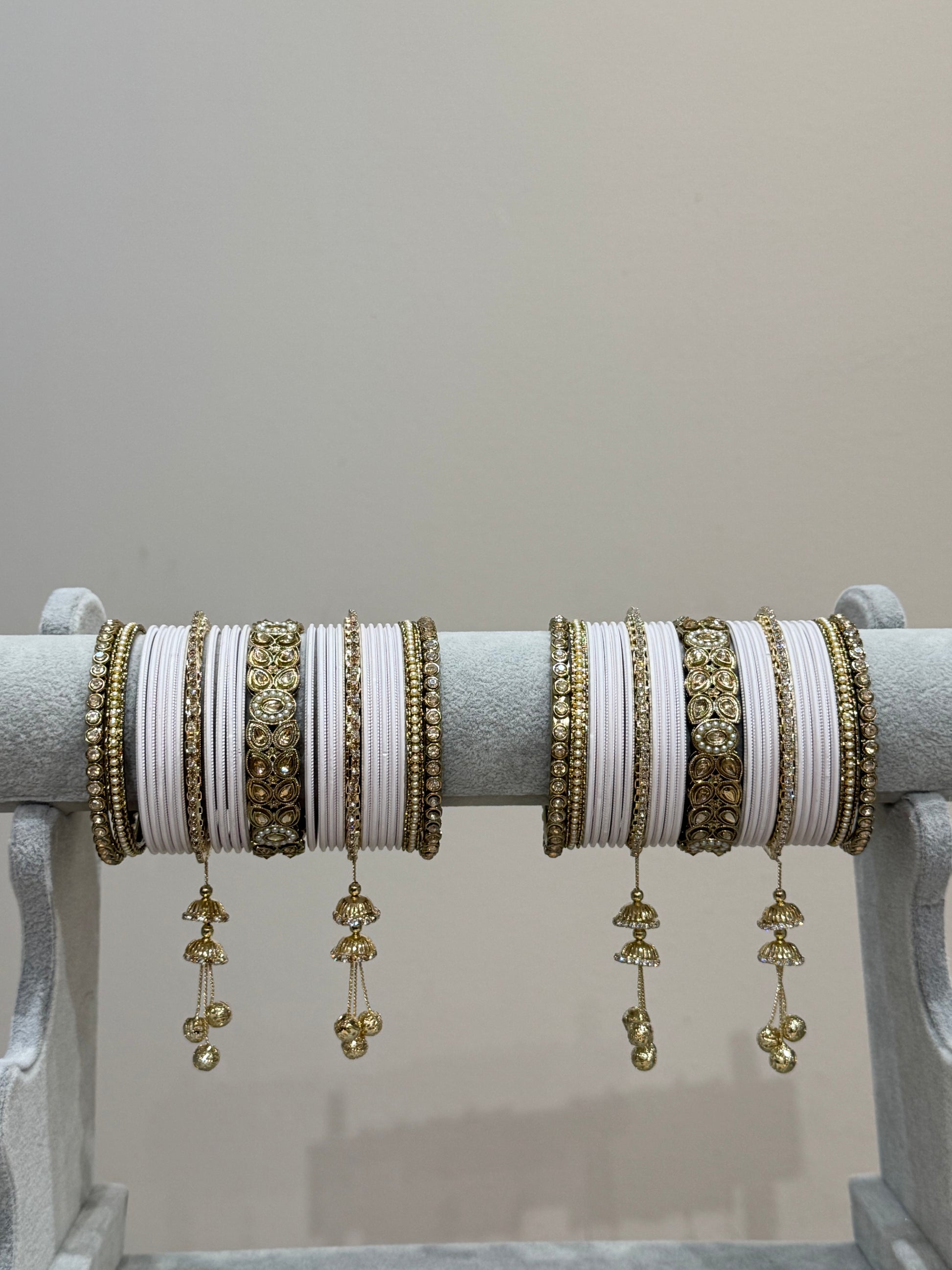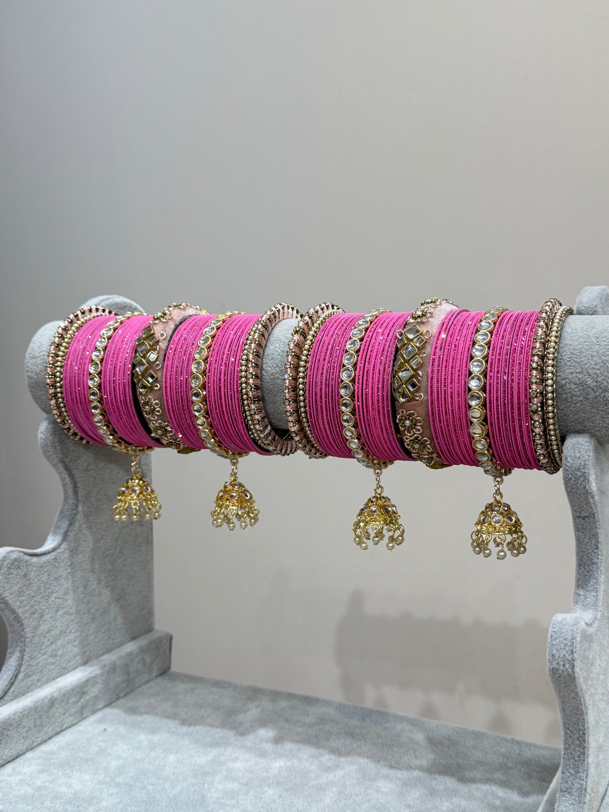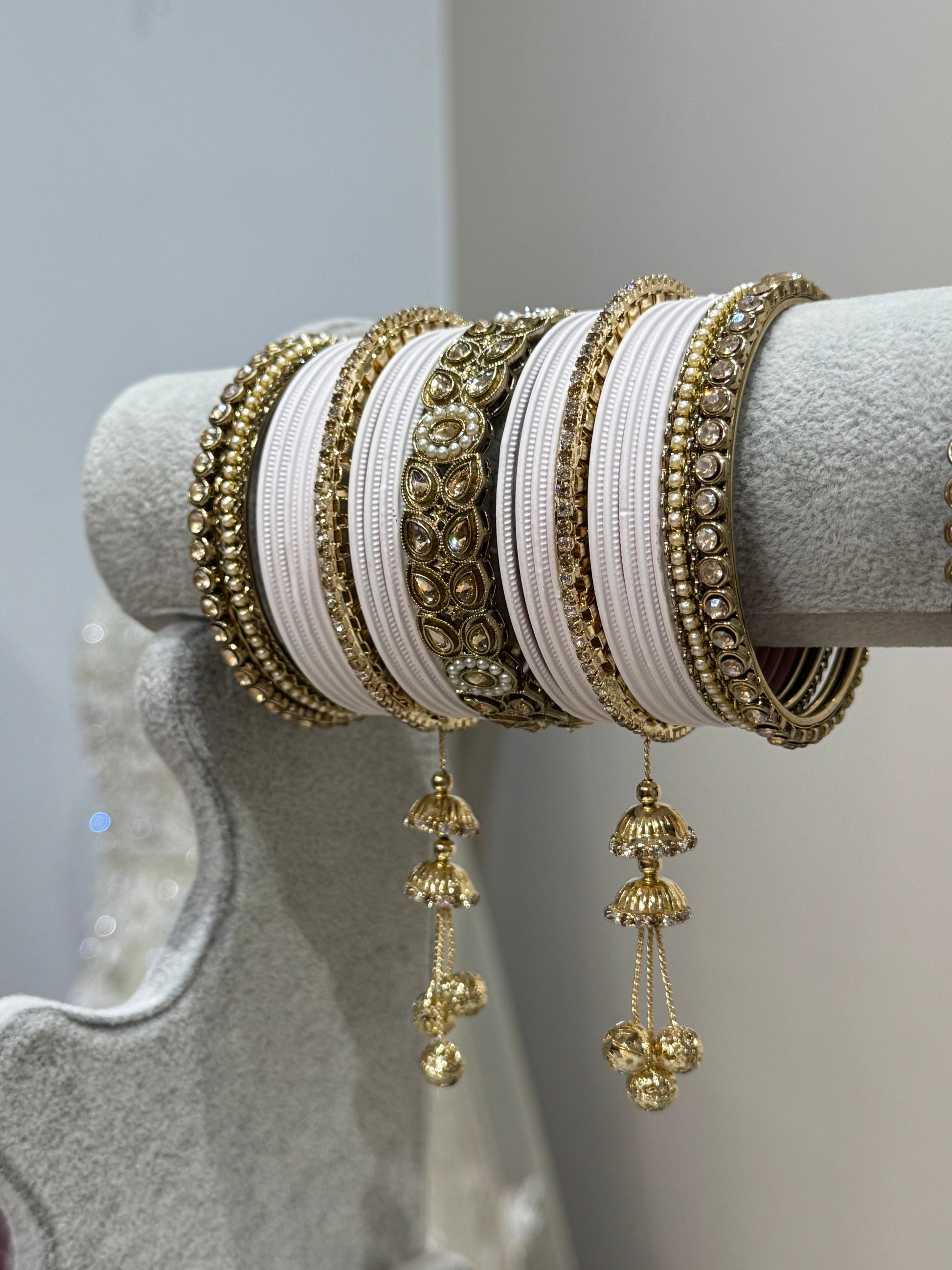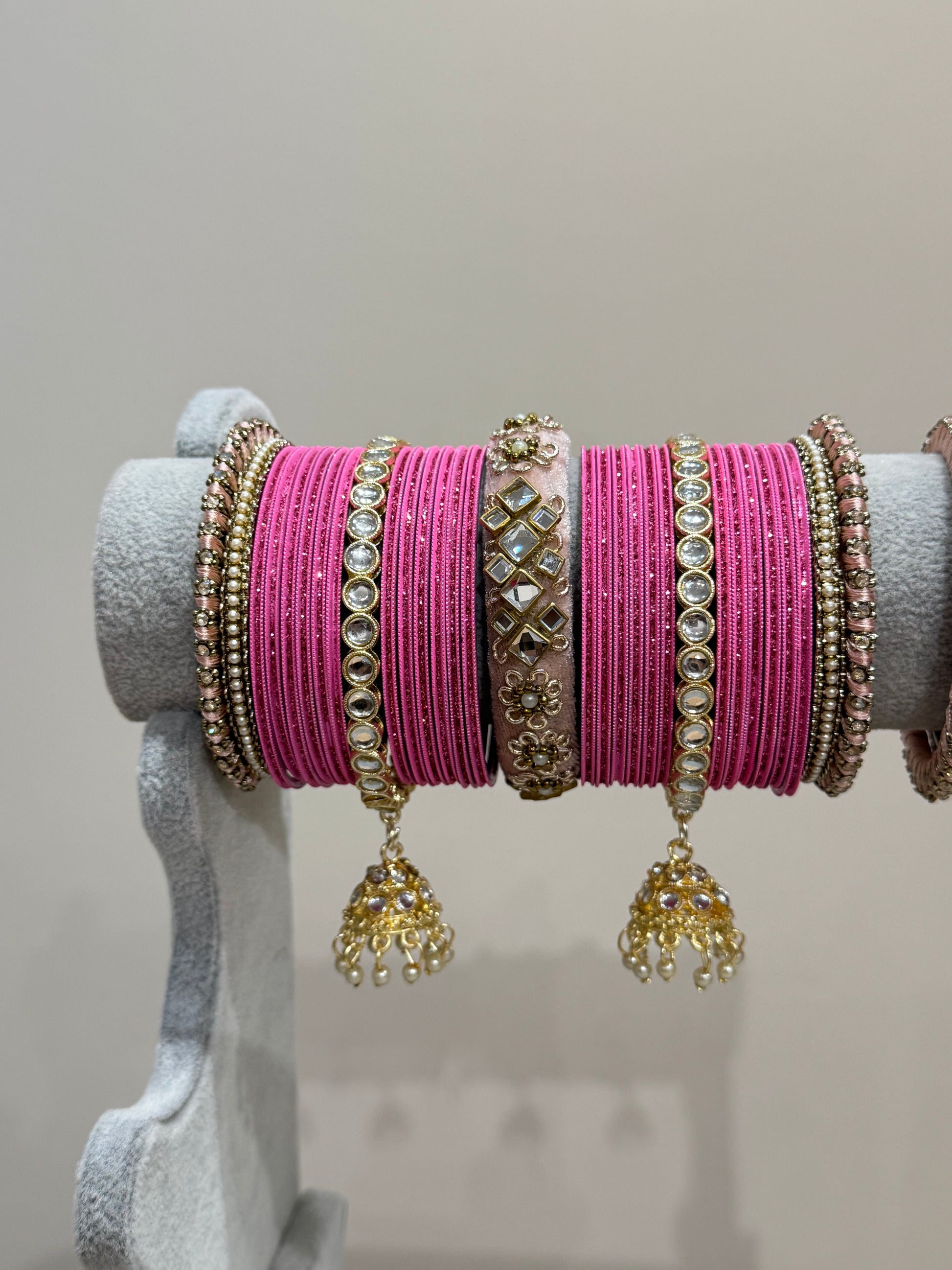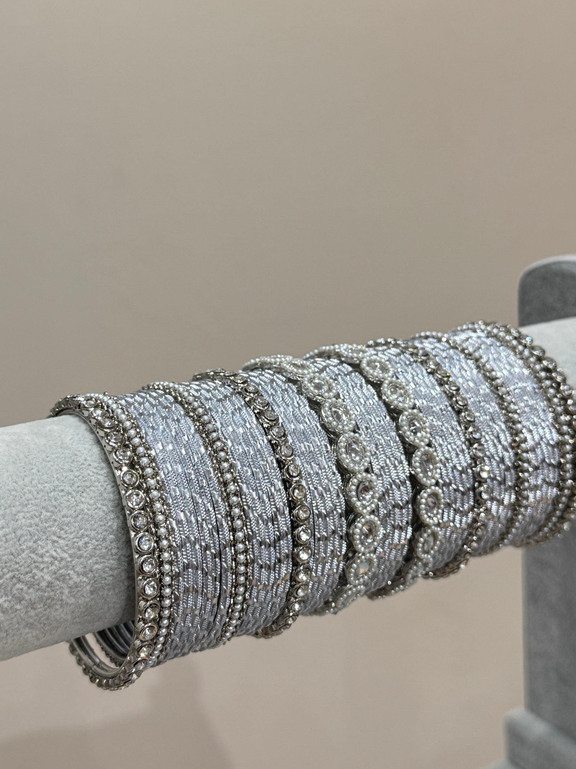 One set of bangles is one displayed until of bangles. Some photographs have 2 sets of bangles for presentation purposes. Unless specified otherwise, the price is for ONE set of of bangles only.