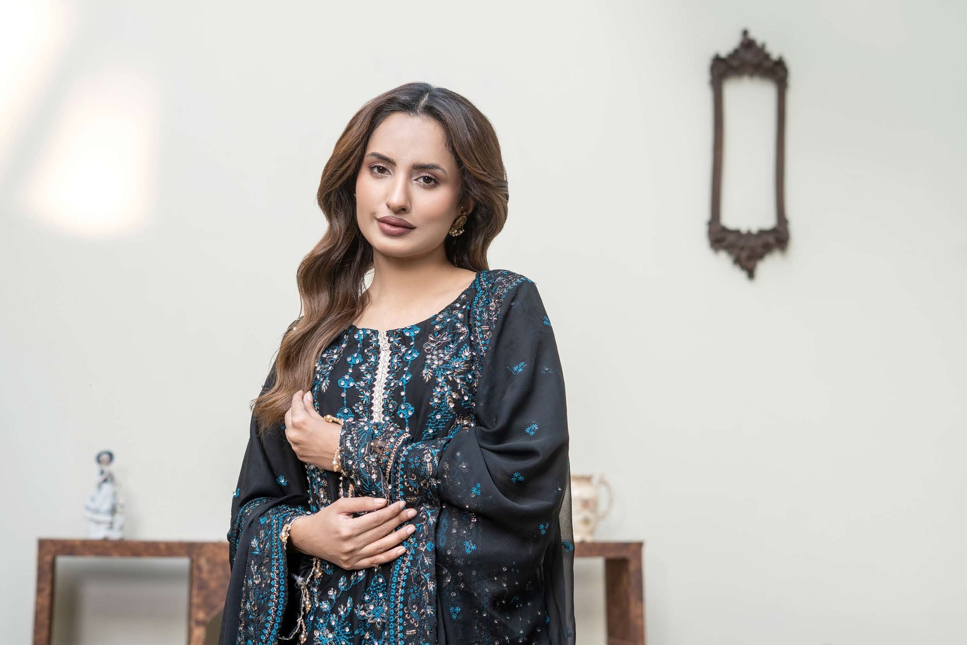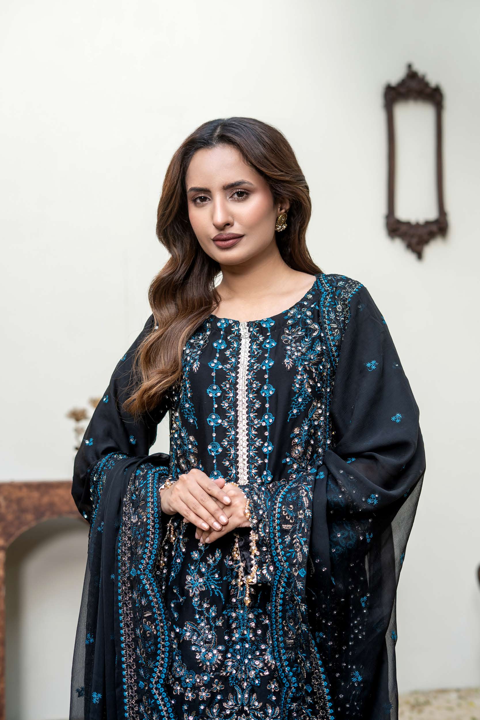 Dieser exquisite 3-teilige Chiffon Suit vereint zeitlose Eleganz mit aufwendiger Handwerkskunst. Gefertigt aus hochwertigem Chiffon, überzeugt das Outfit durch seinen fließenden Fall, seine Leichtigkeit und seinen edlen Look – perfekt für festliche Anlässe, Hochzeiten und elegante Events.