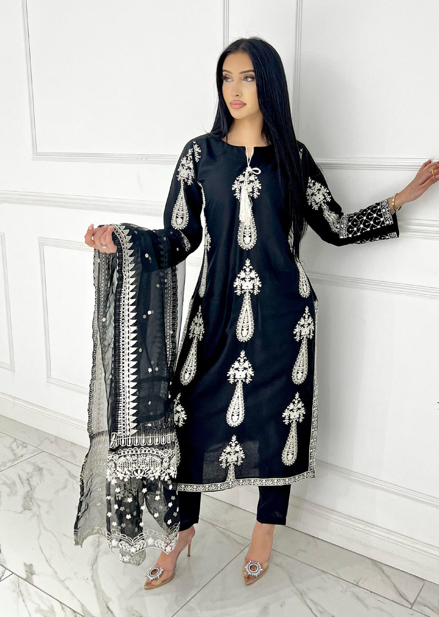 Experience the elegance of our HK300 Linen Outfit, featuring exquisite embroidery on luxurious linen.