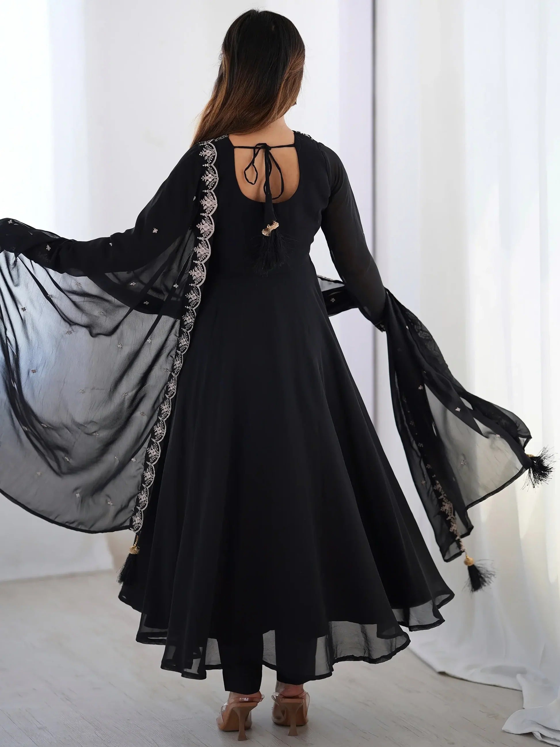 Elegantes Schwarzes Georgette-Festoutfit & Dupatta