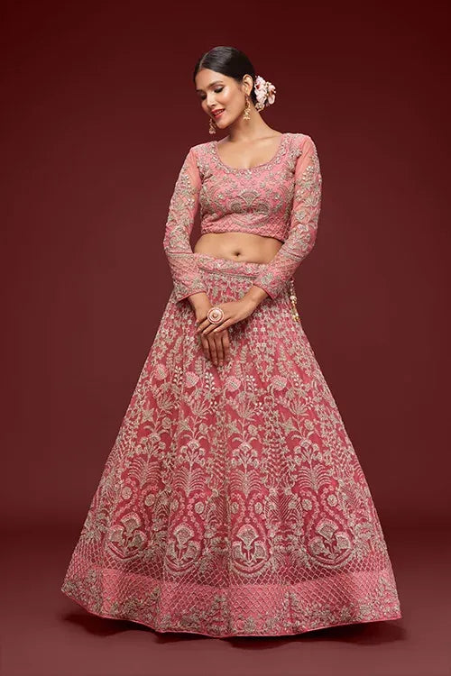 Unser Fantasy Rose Lehenga Choli ist ein traumhaftes Ensemble für Hochzeiten, Empfänge und festliche Anlässe. – ideal für Gäste großer Feierlichkeiten.