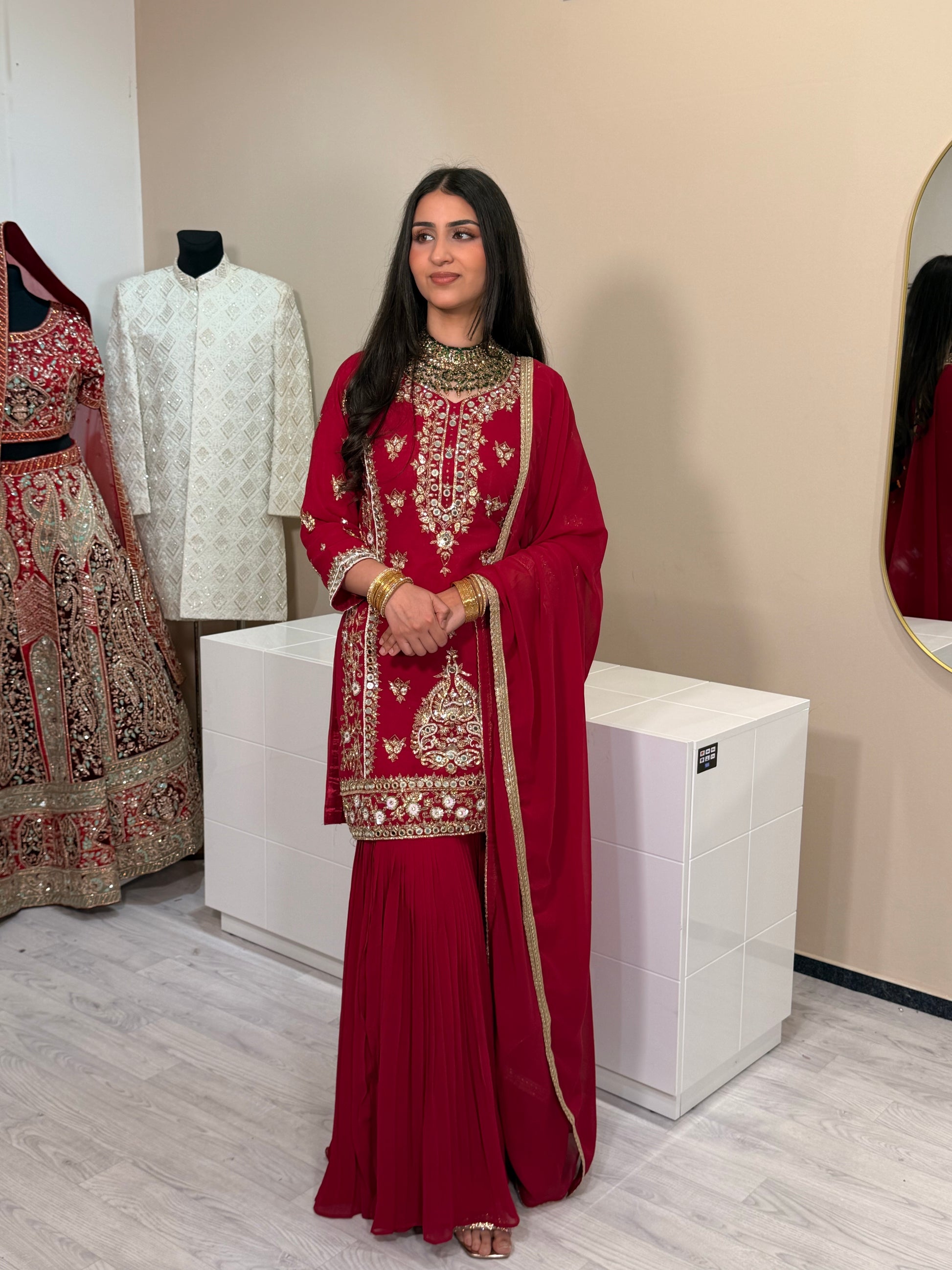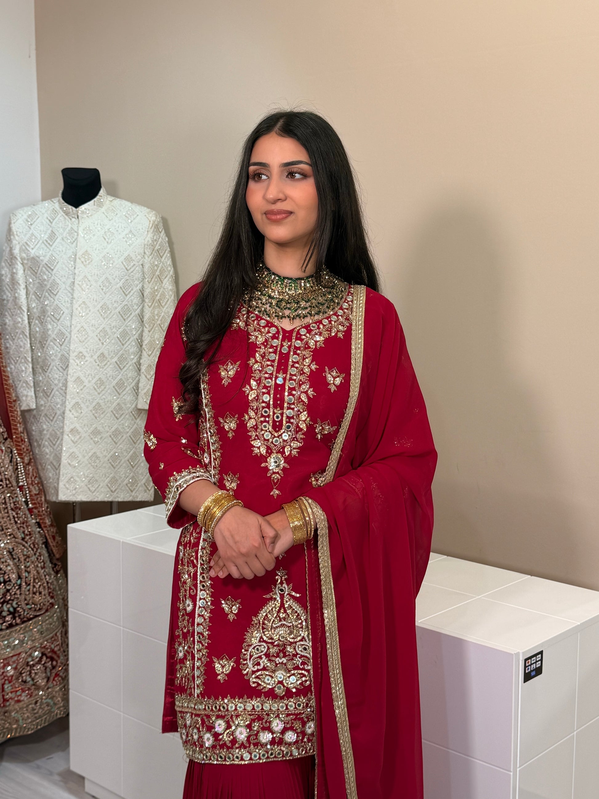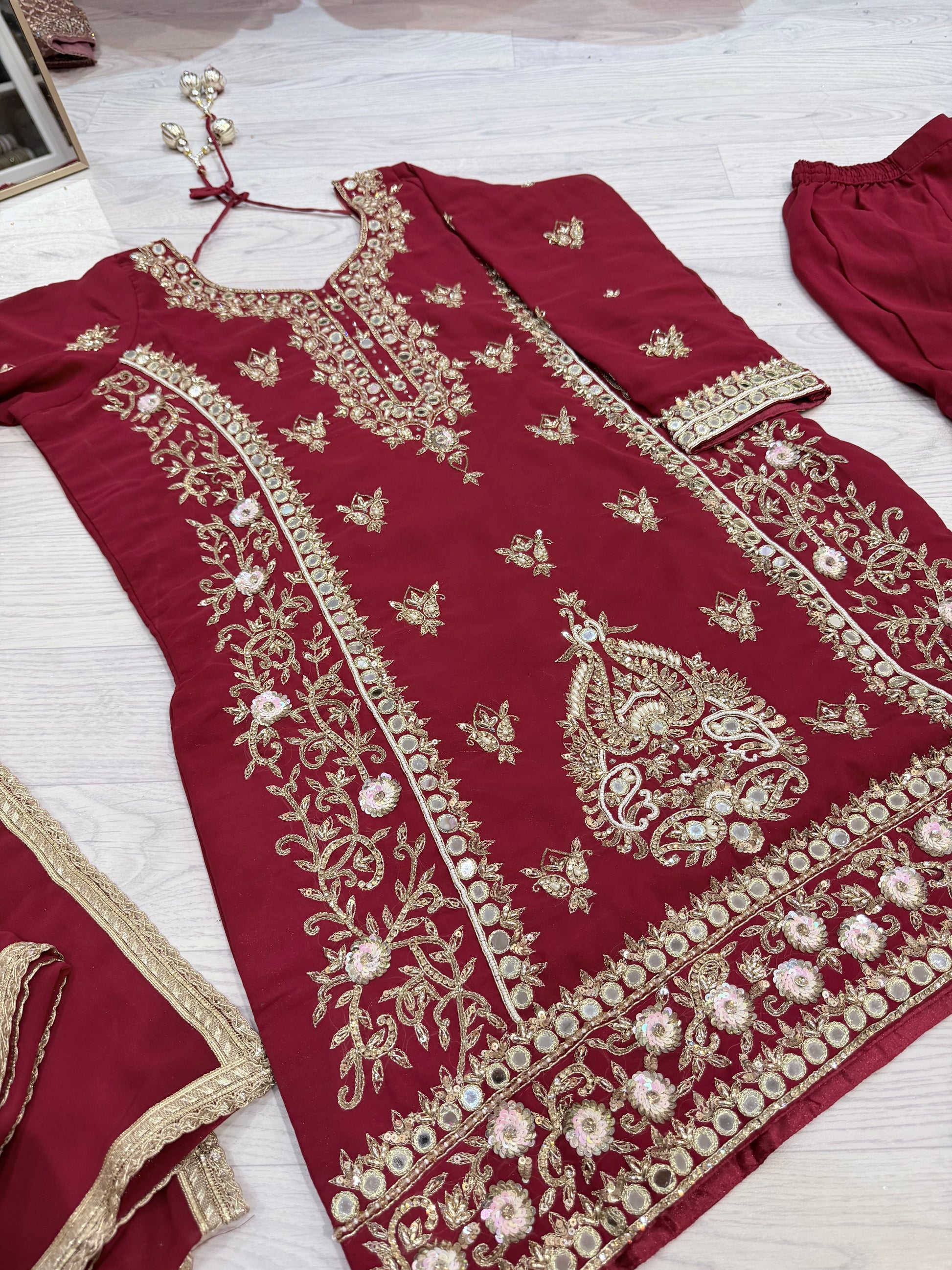 Dieser elegante Heavy Handmade Georgette Suit in Hotpink ist die perfekte Wahl für stilvolle Abendanlässe. Der weiche, fließende Georgette-Stoff verleiht dem Outfit eine luxuriöse Ausstrahlung, während die feine Embroidery Work für einen edlen, hochwertigen Look sorgt.