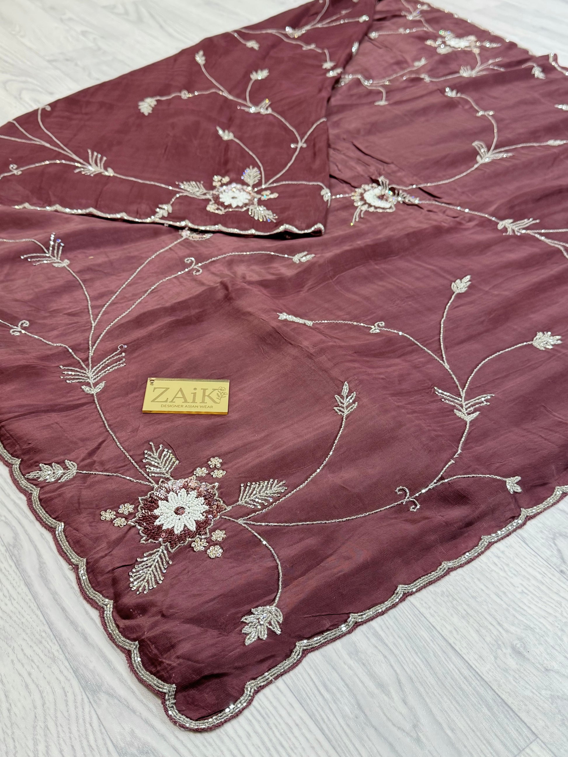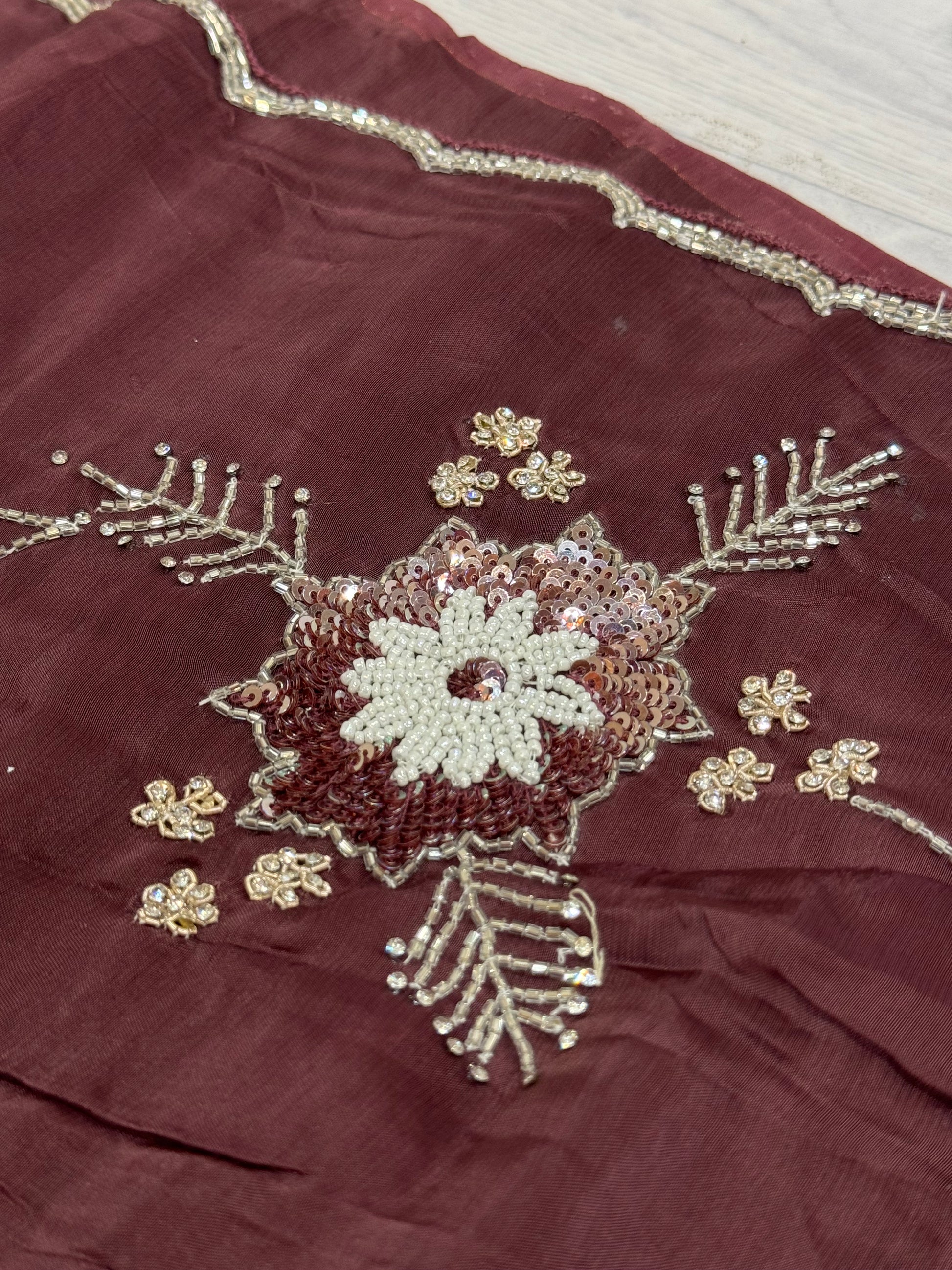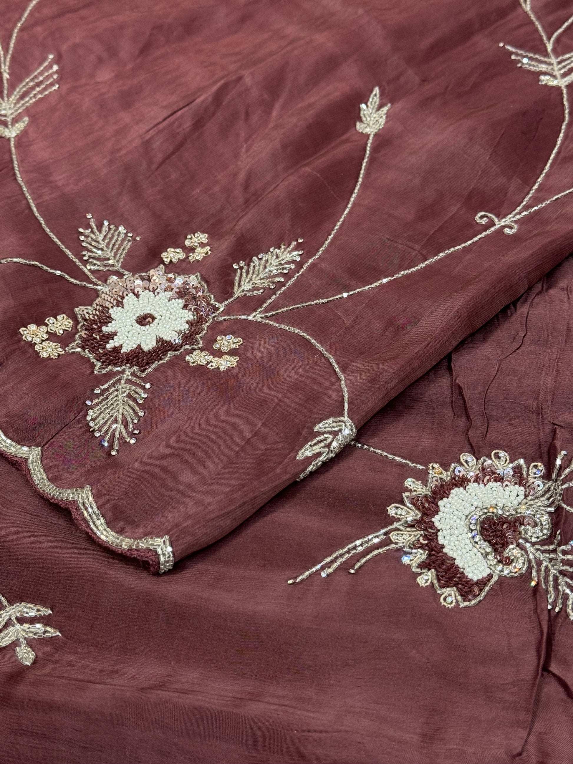Unstitched blouse set includes saree and unstitched blouse without lining fabric. (Delivery time 2-5 days)