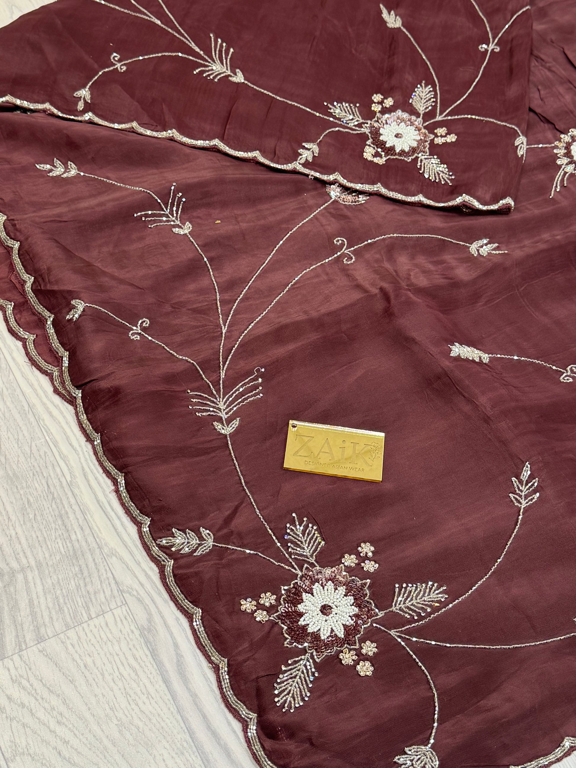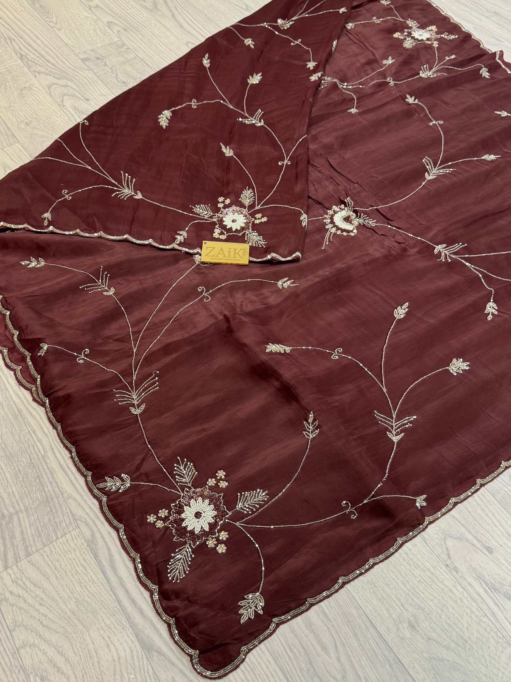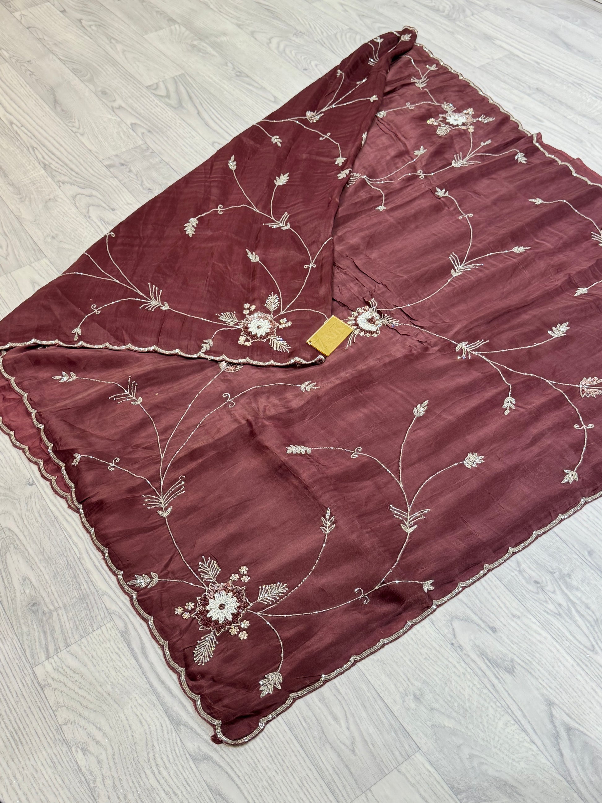 Unstitched blouse set includes saree and unstitched blouse without lining fabric. (Delivery time 2-5 days)