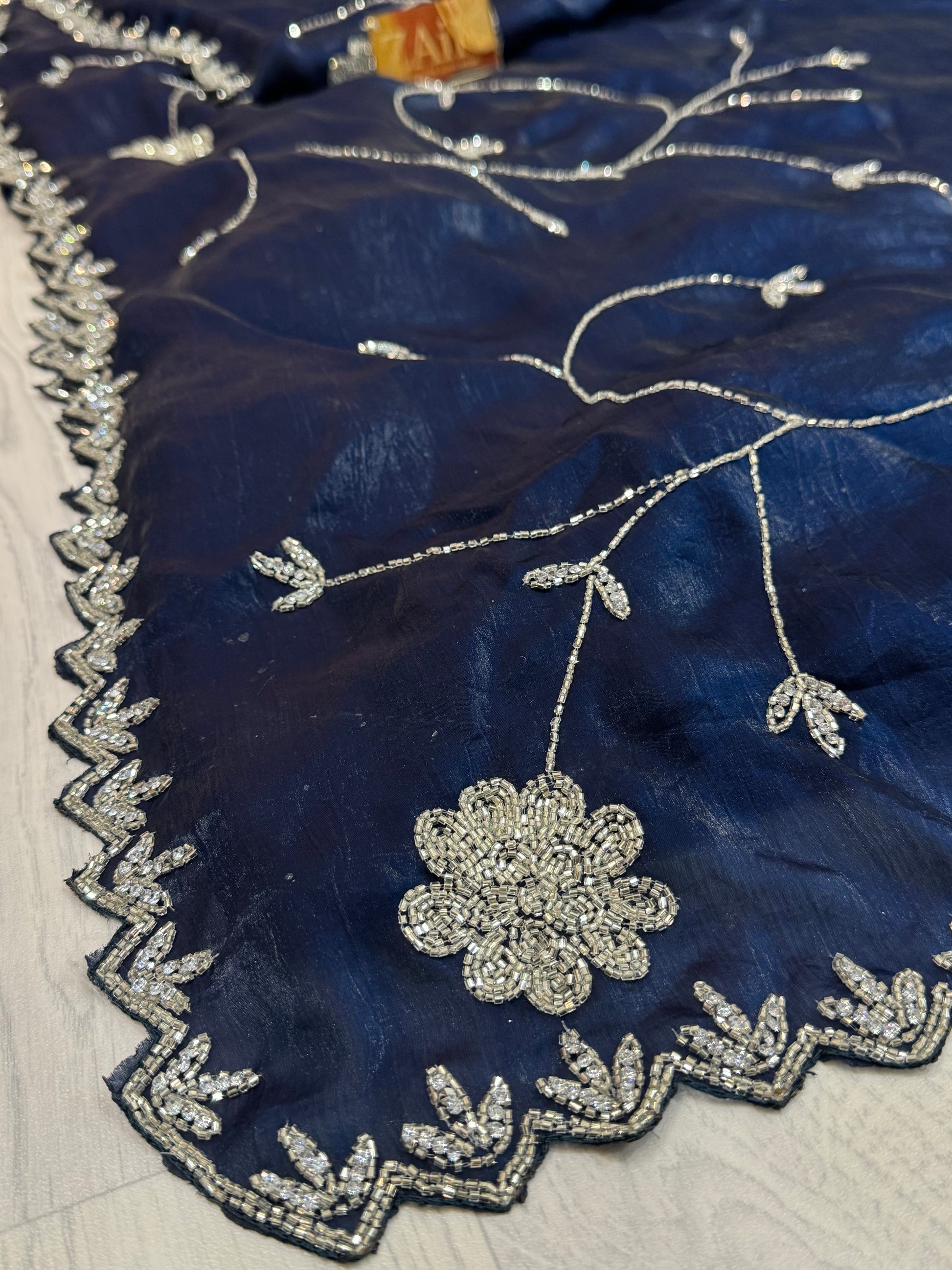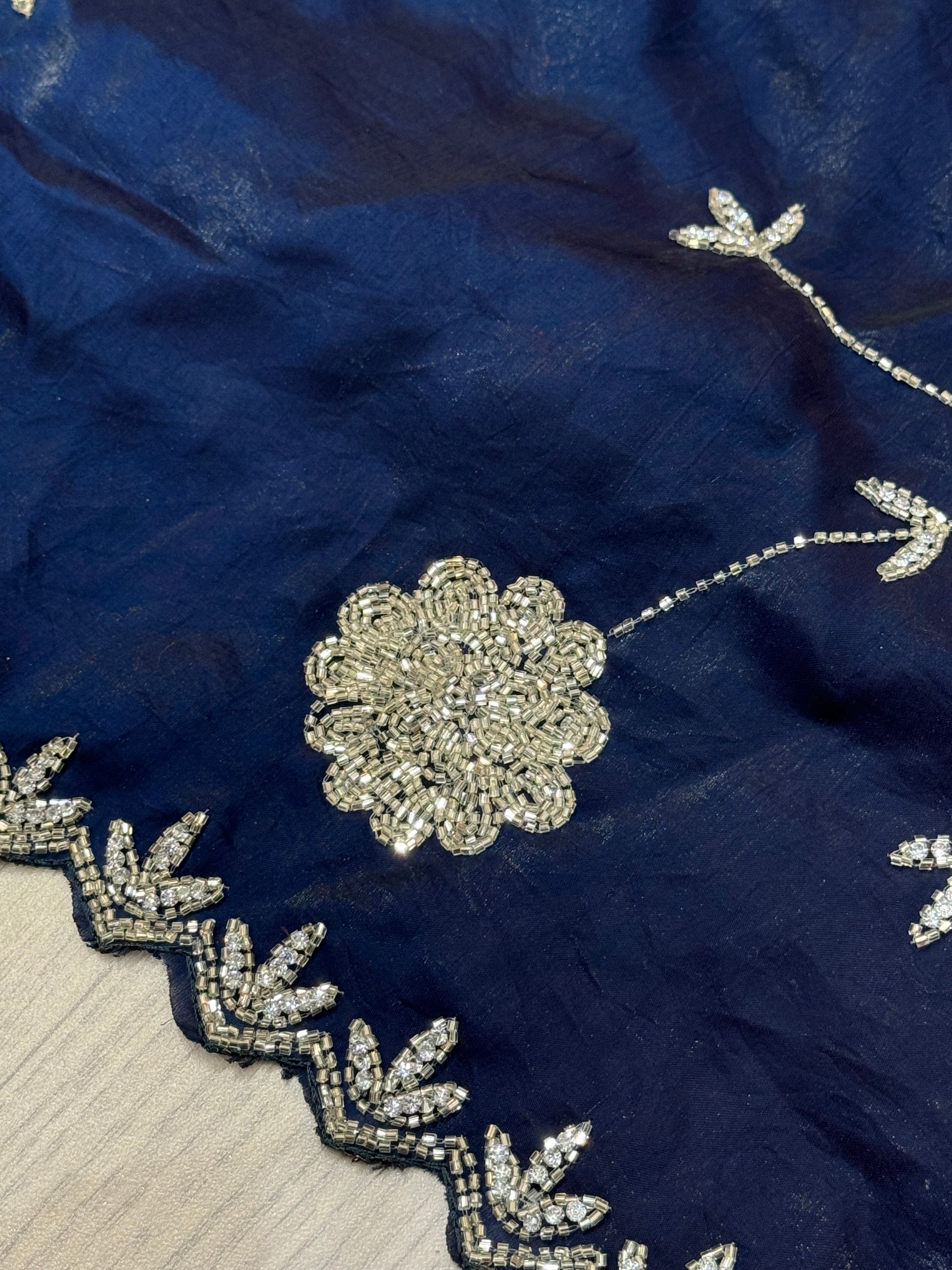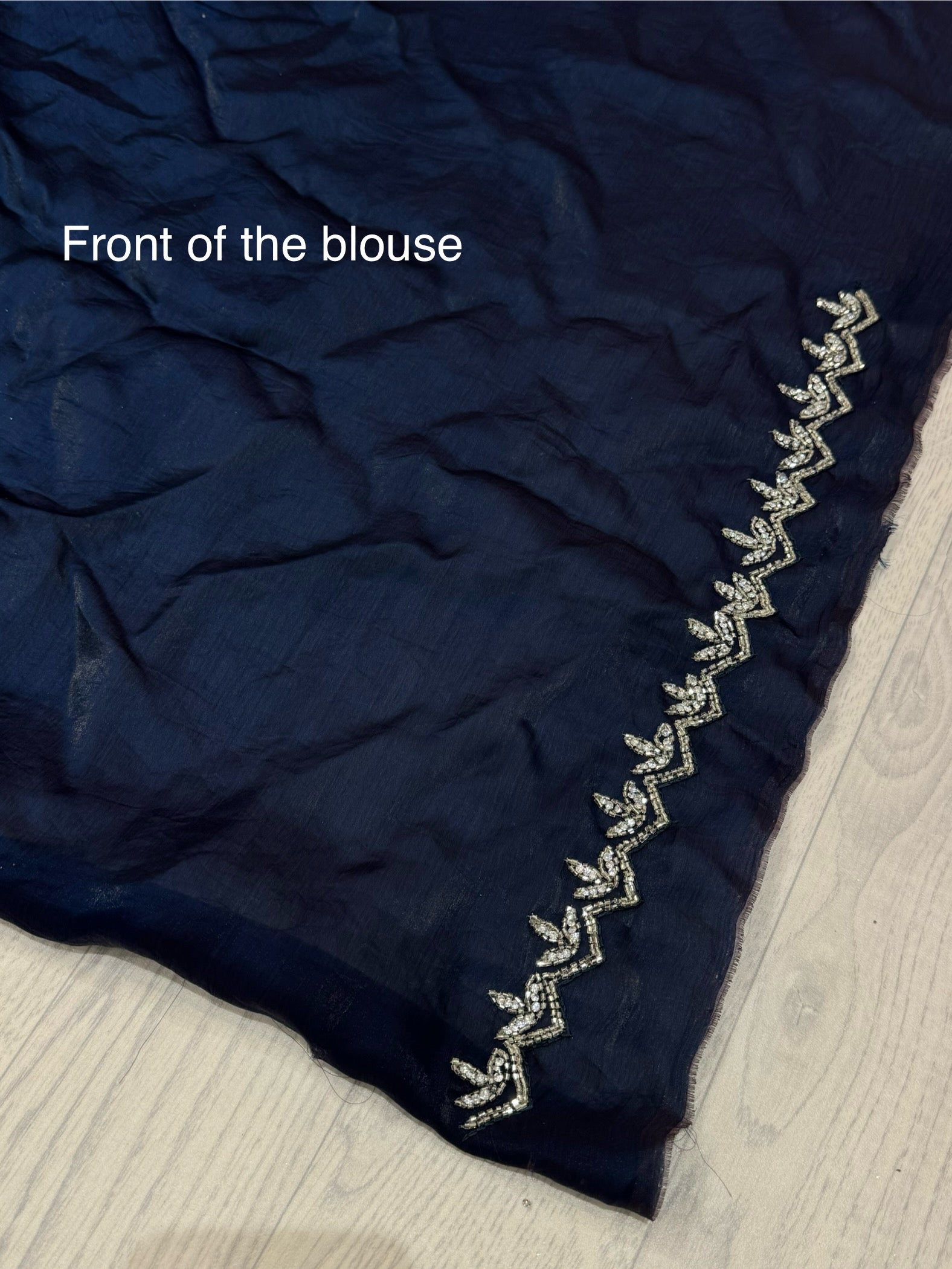 Unstitched blouse set includes saree and unstitched blouse without lining fabric. (Delivery time 2-5 days)
