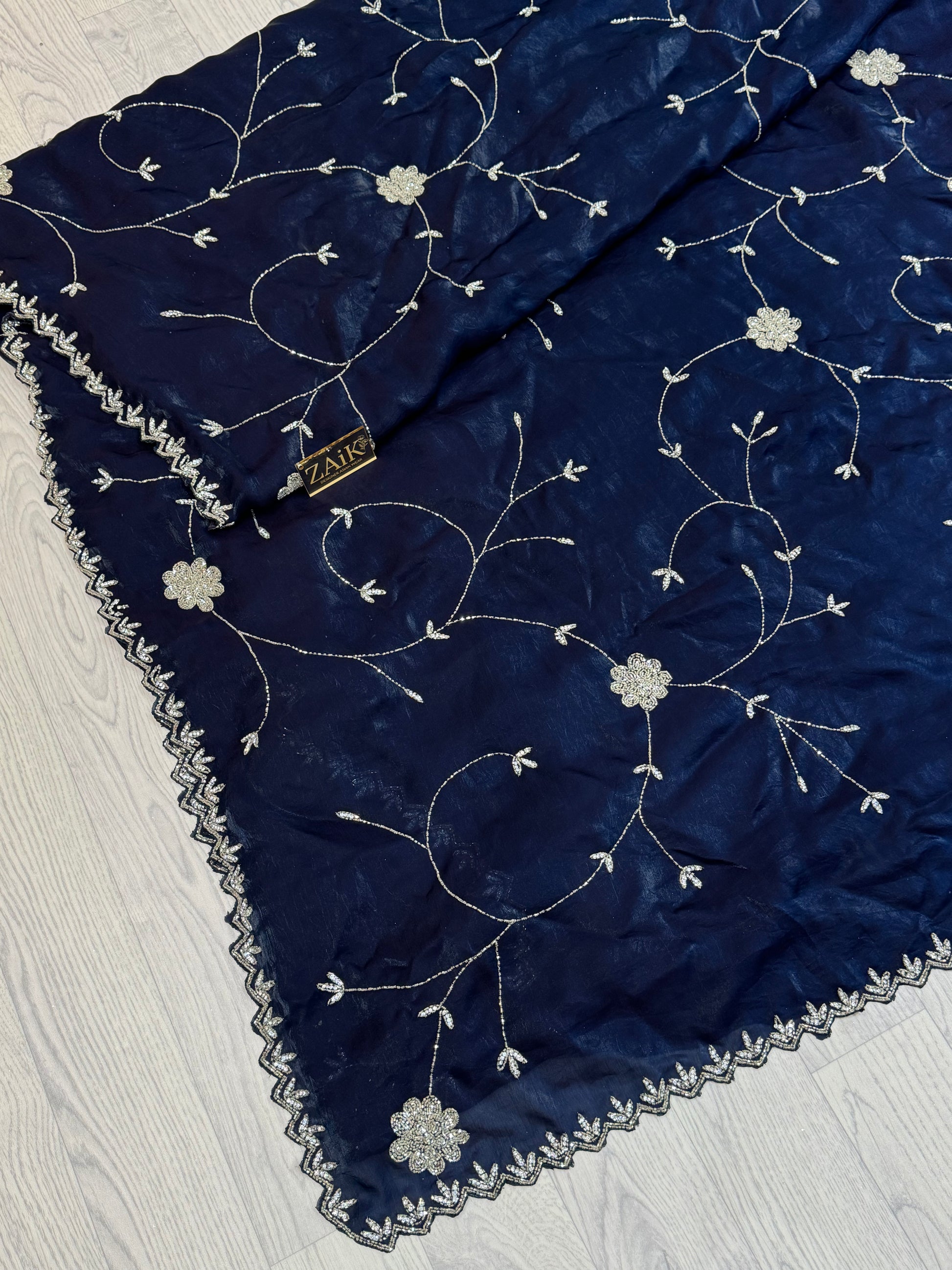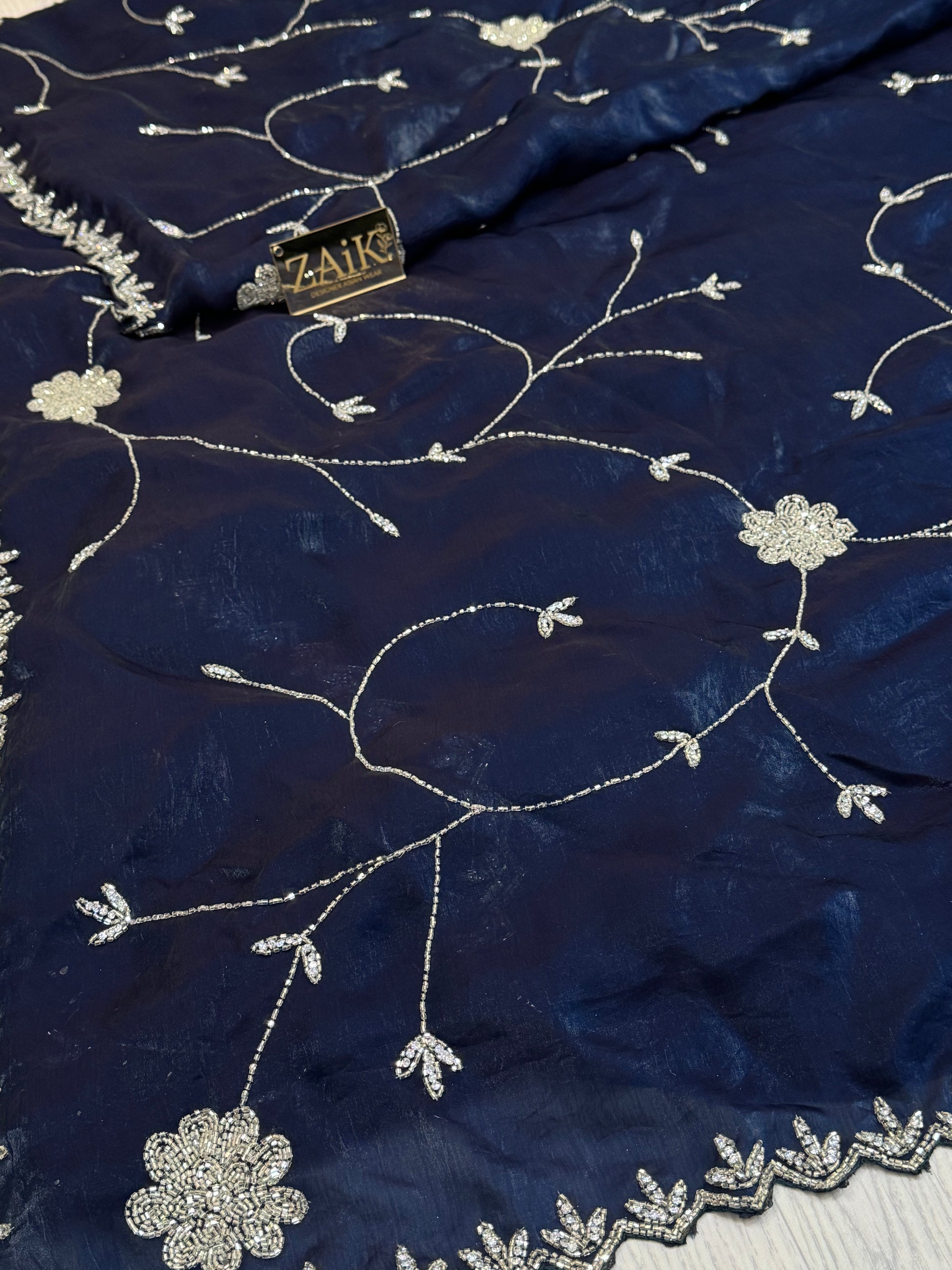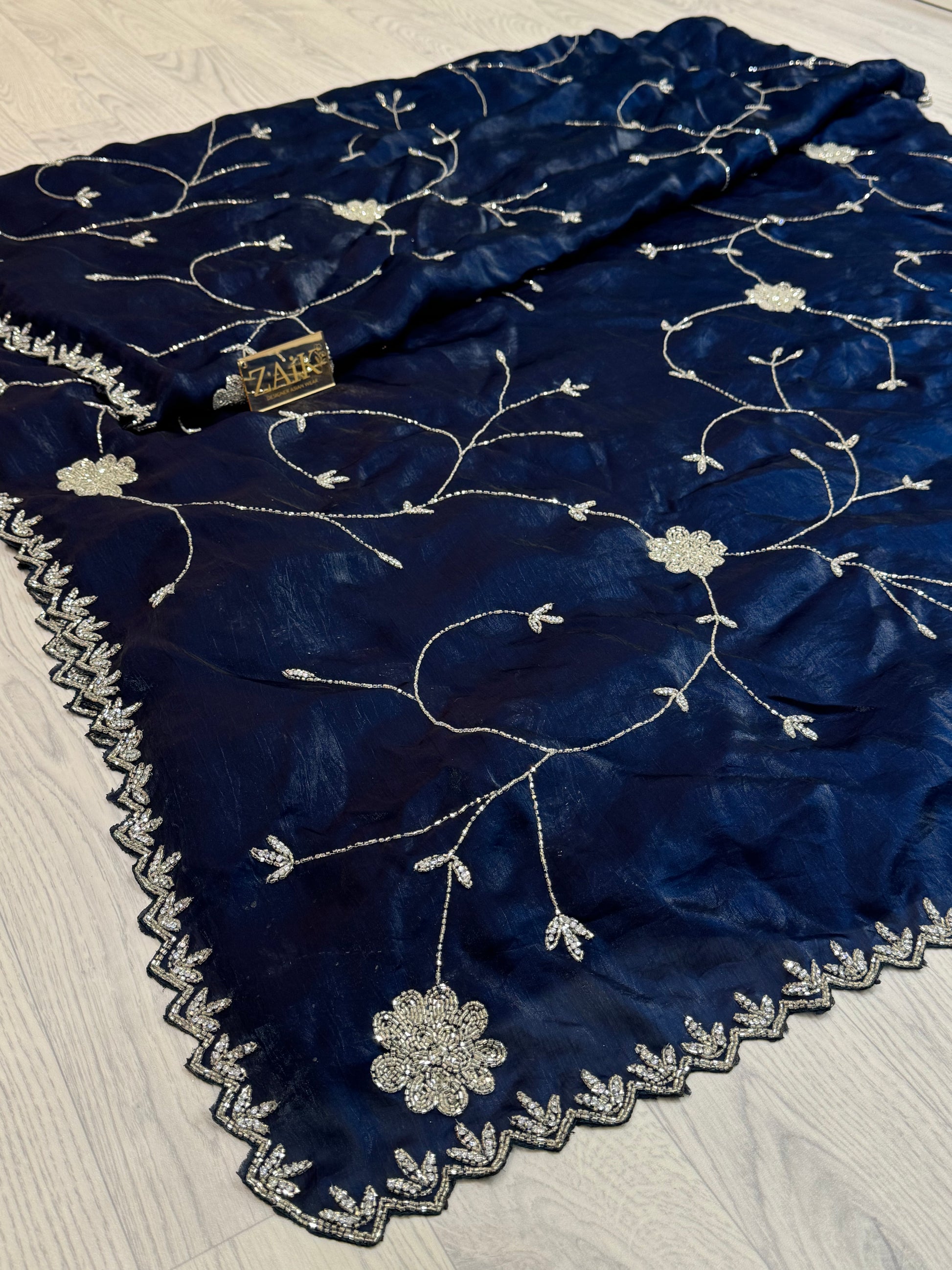 Unstitched blouse set includes saree and unstitched blouse without lining fabric. (Delivery time 2-5 days)