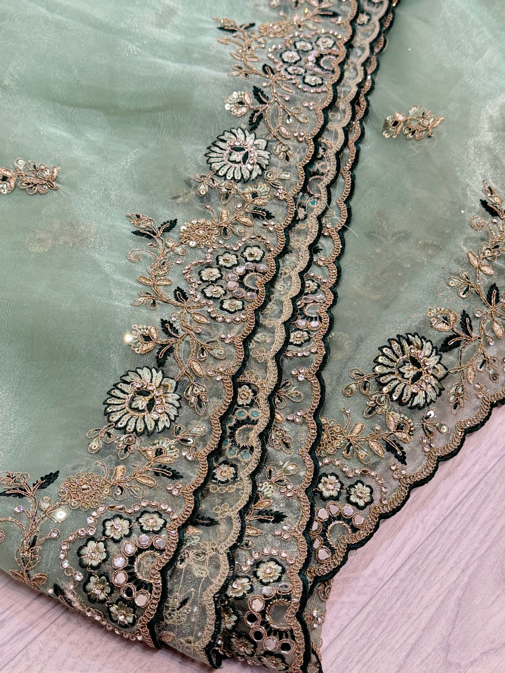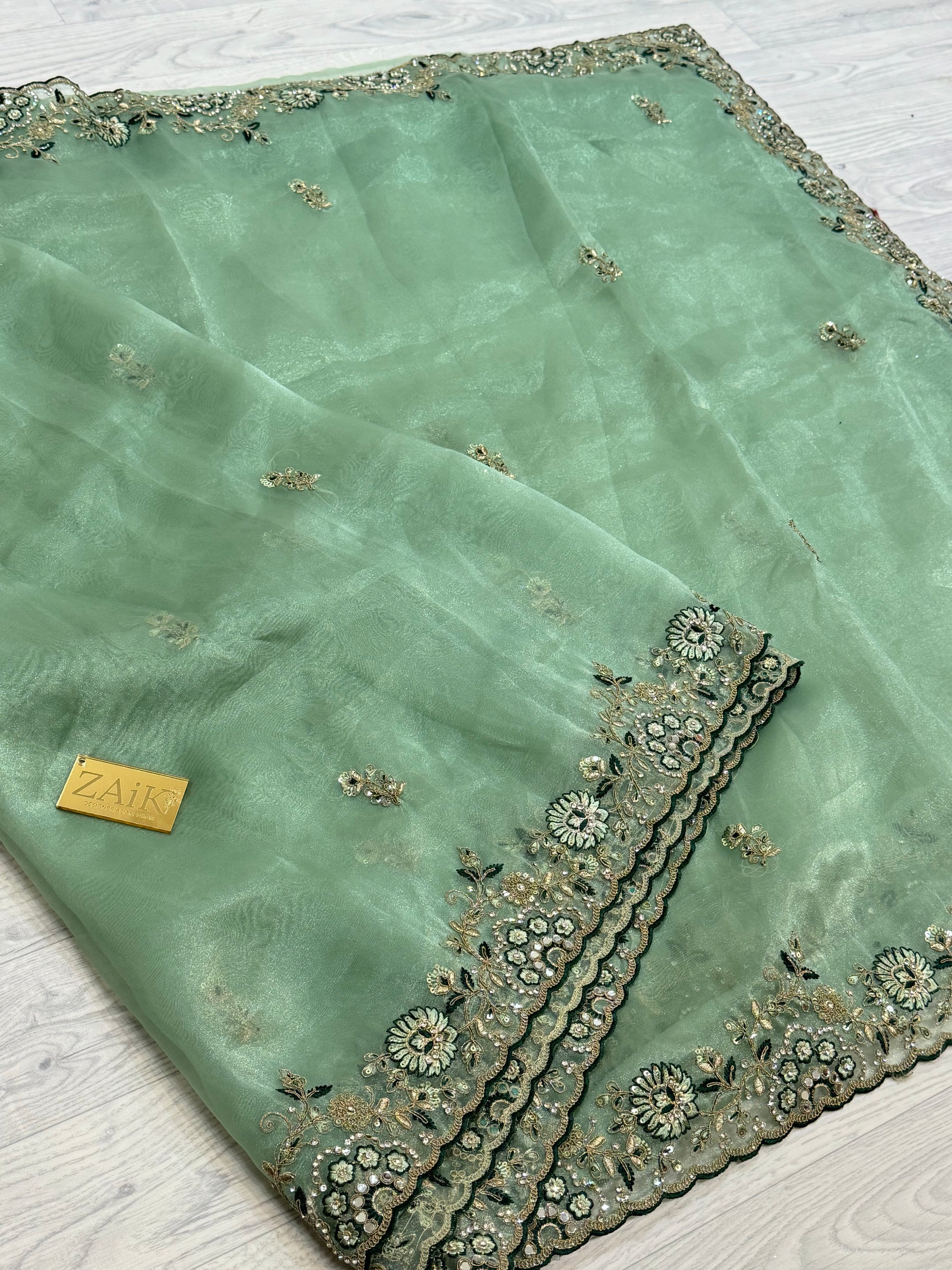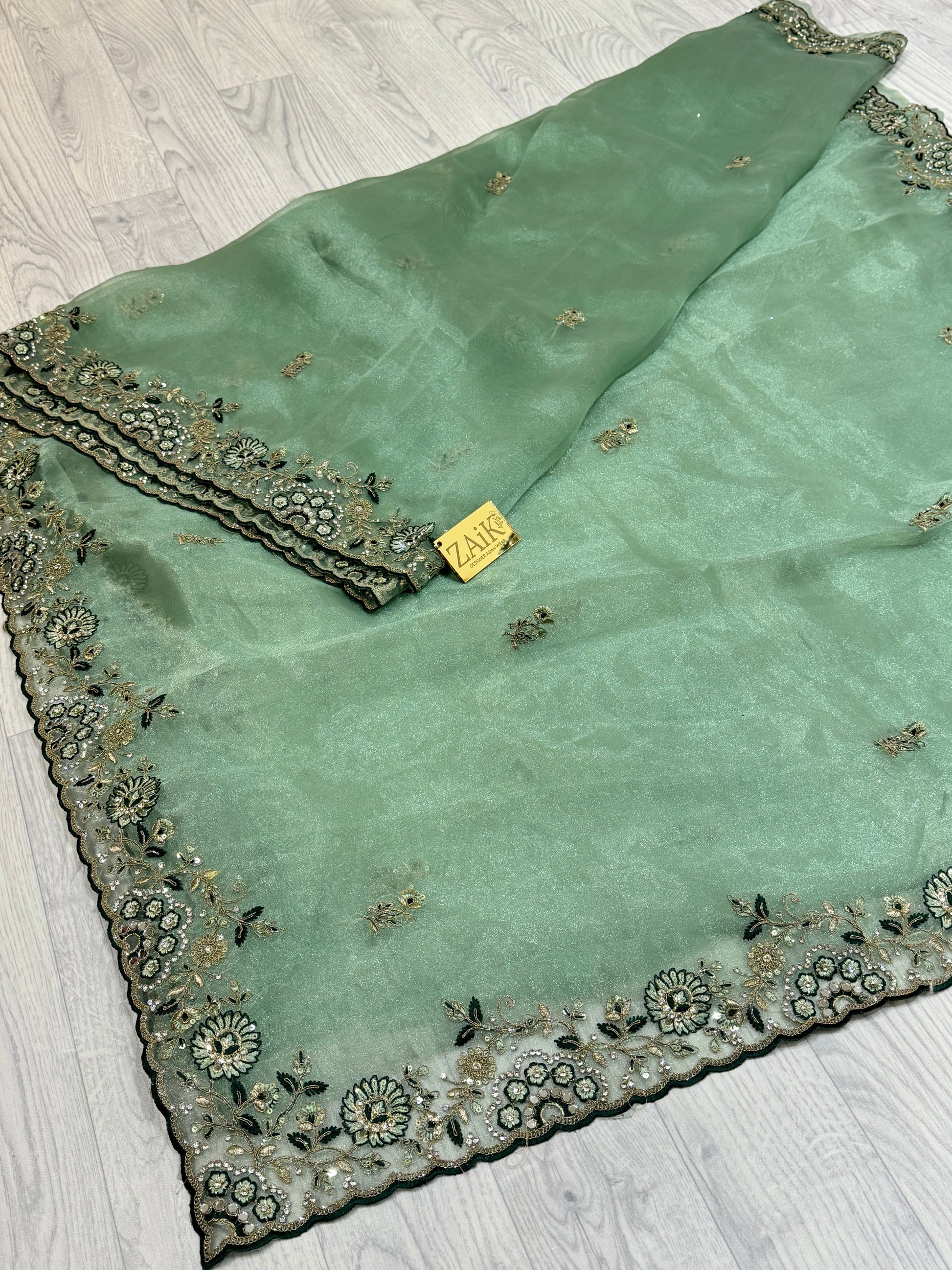 Unstitched blouse set includes saree and unstitched blouse without lining fabric. (Delivery time 2-5 days)