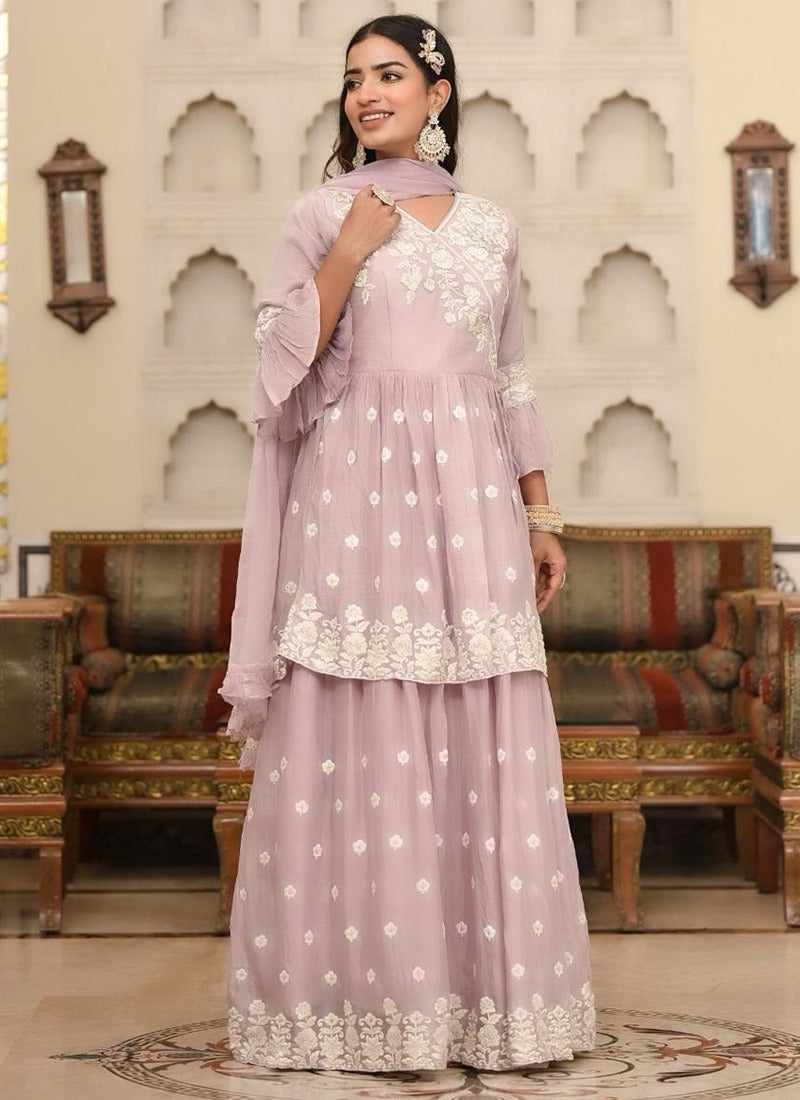 Muslin Lilac Party Wear Hand Work Readymade Lehenga Suit