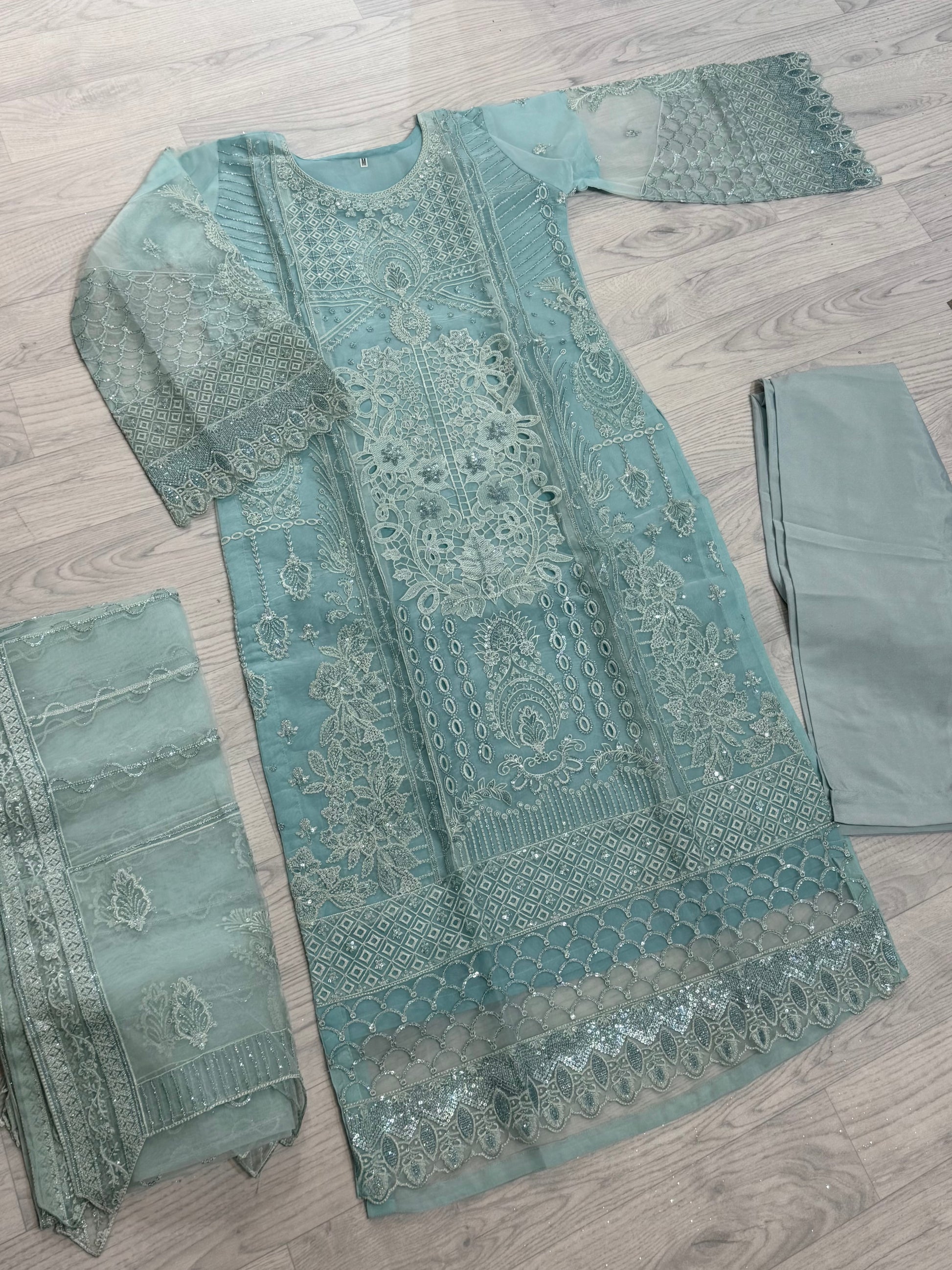 Dieses elegante Ready-to-Wear Organza Set vereint luxuriöse Leichtigkeit mit moderner Raffinesse. Gefertigt aus hochwertigem Organza-Stoff, überzeugt es durch seinen fließenden Fall und ein angenehm leichtes Tragegefühl bei gleichzeitig edler Ausstrahlung.