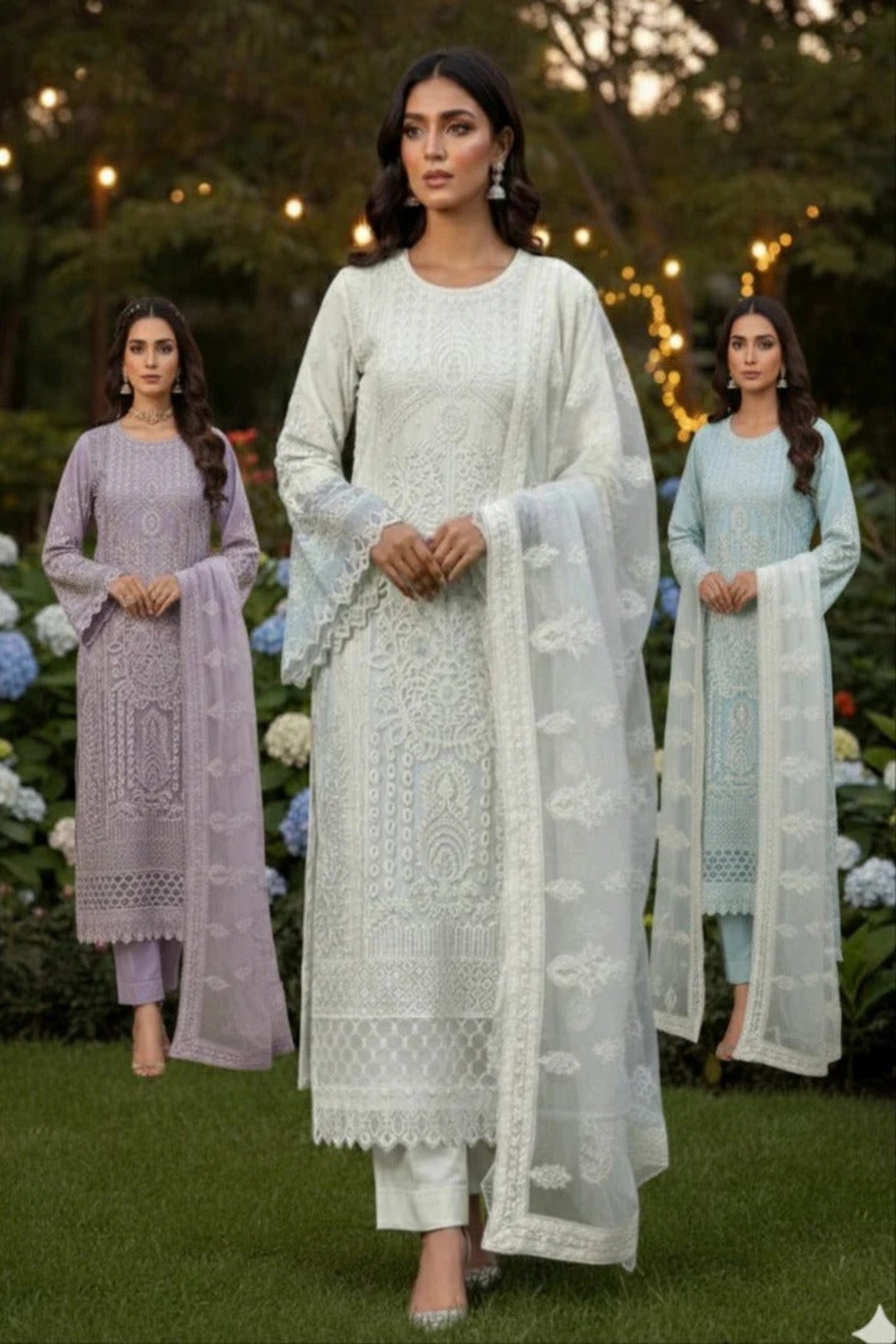 Premium Organza 3-Piece Set – 357- White