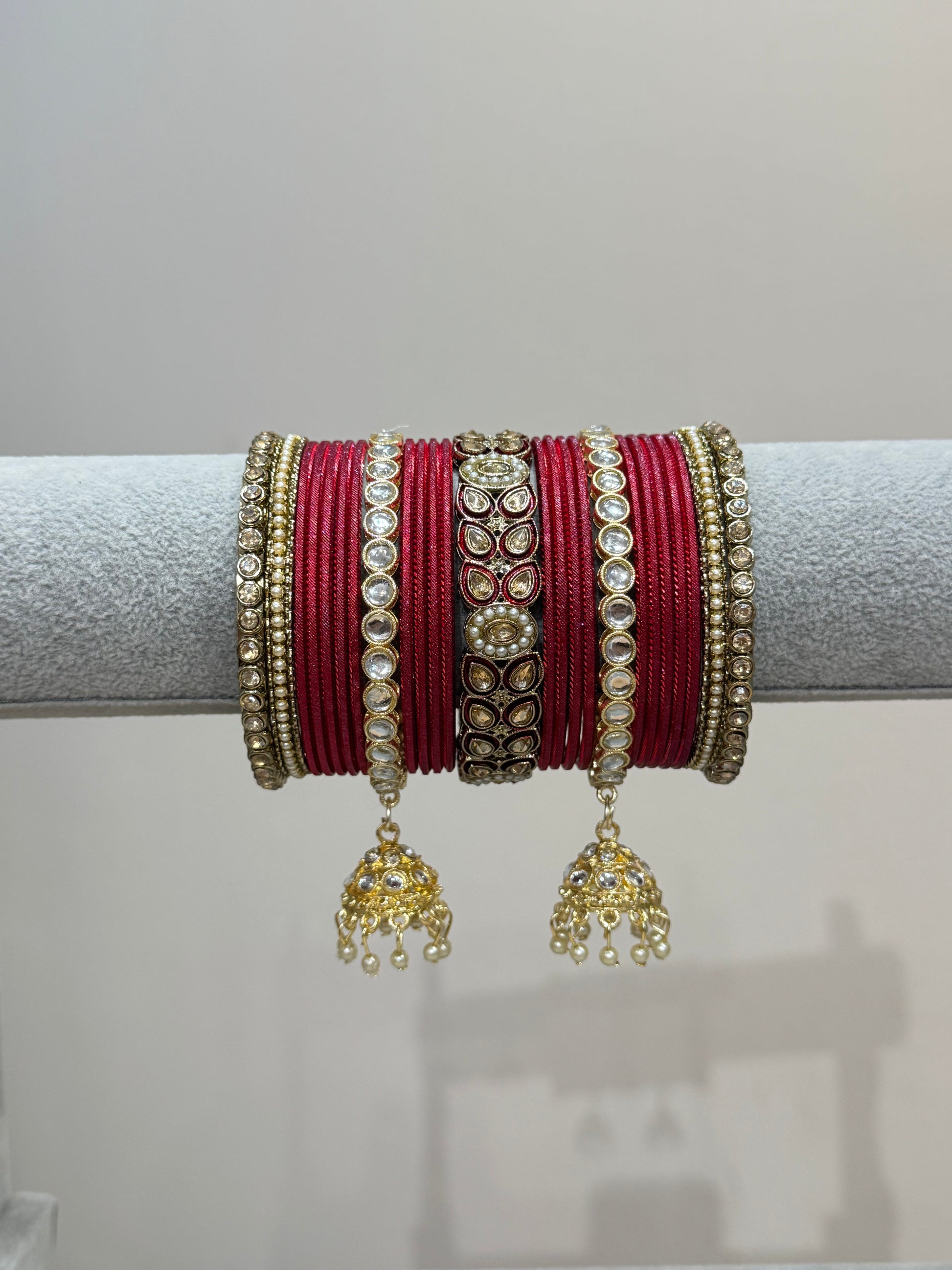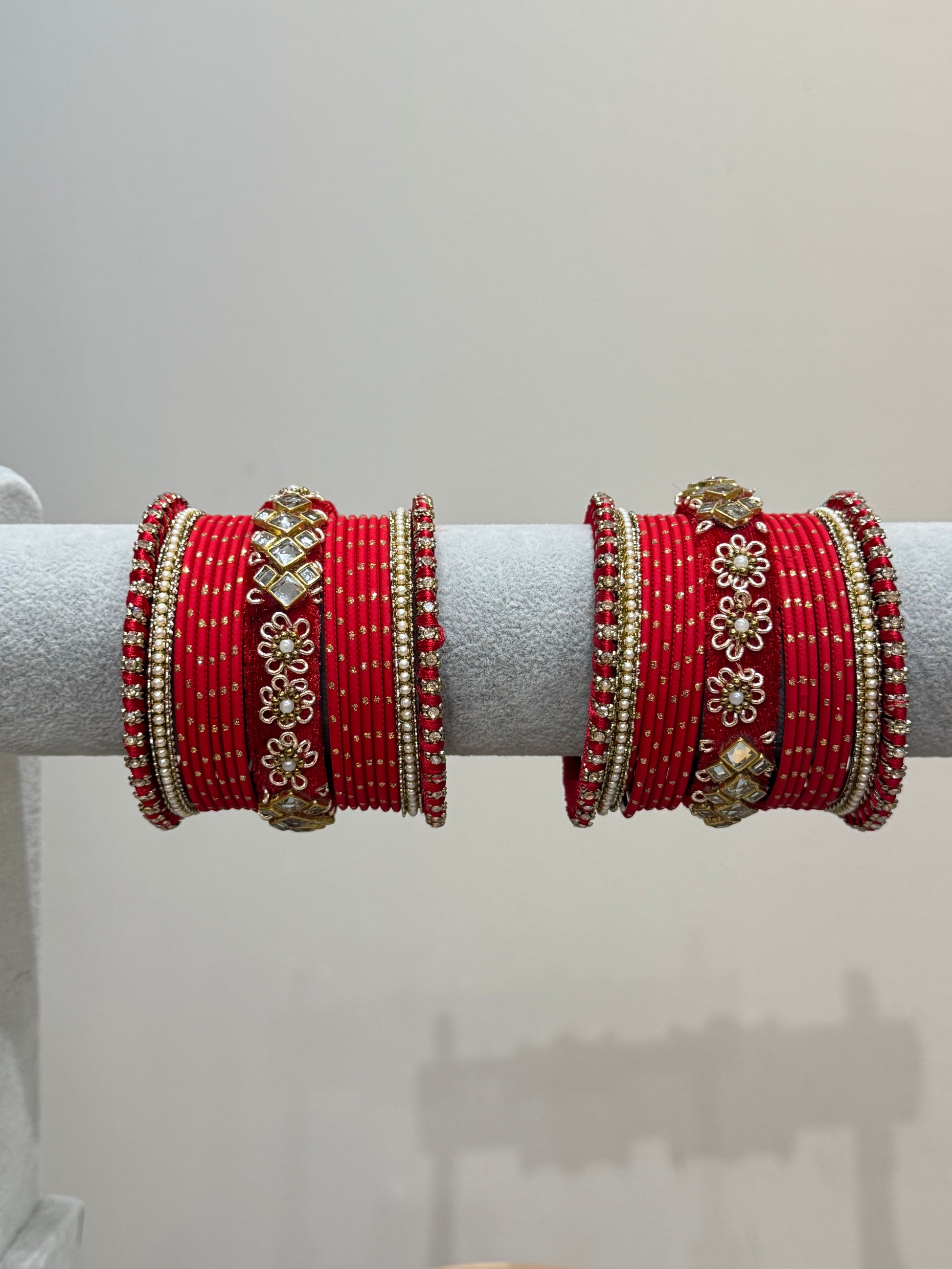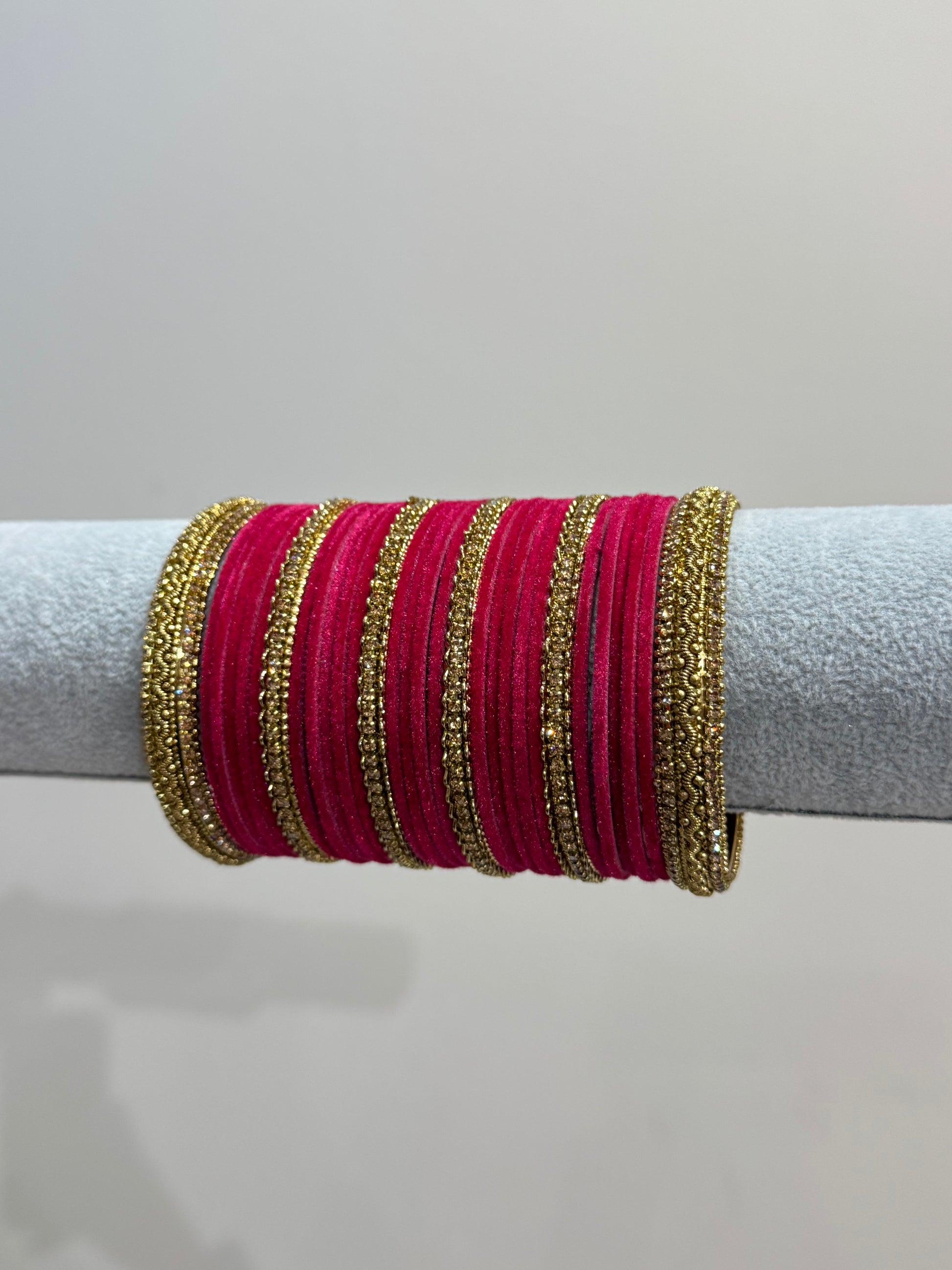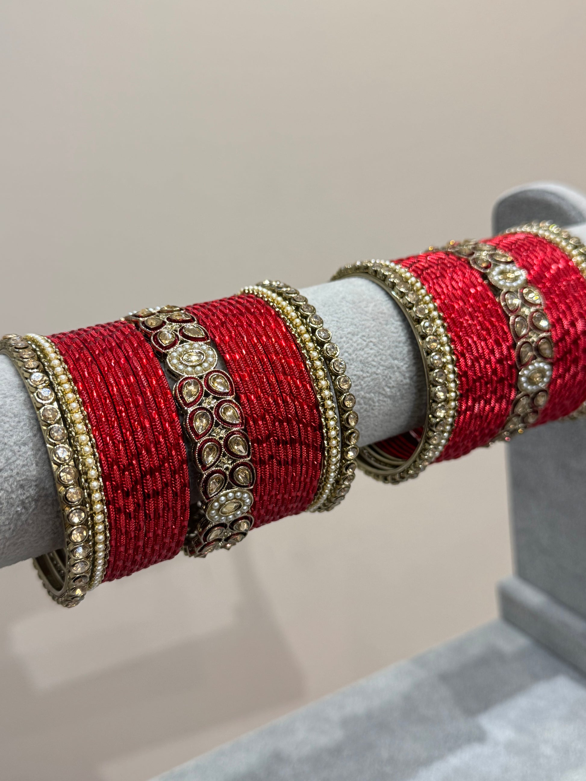 One set of bangles is one displayed until of bangles. Some photographs have 2 sets of bangles for presentation purposes. Unless specified otherwise, the price is for ONE set of of bangles only.