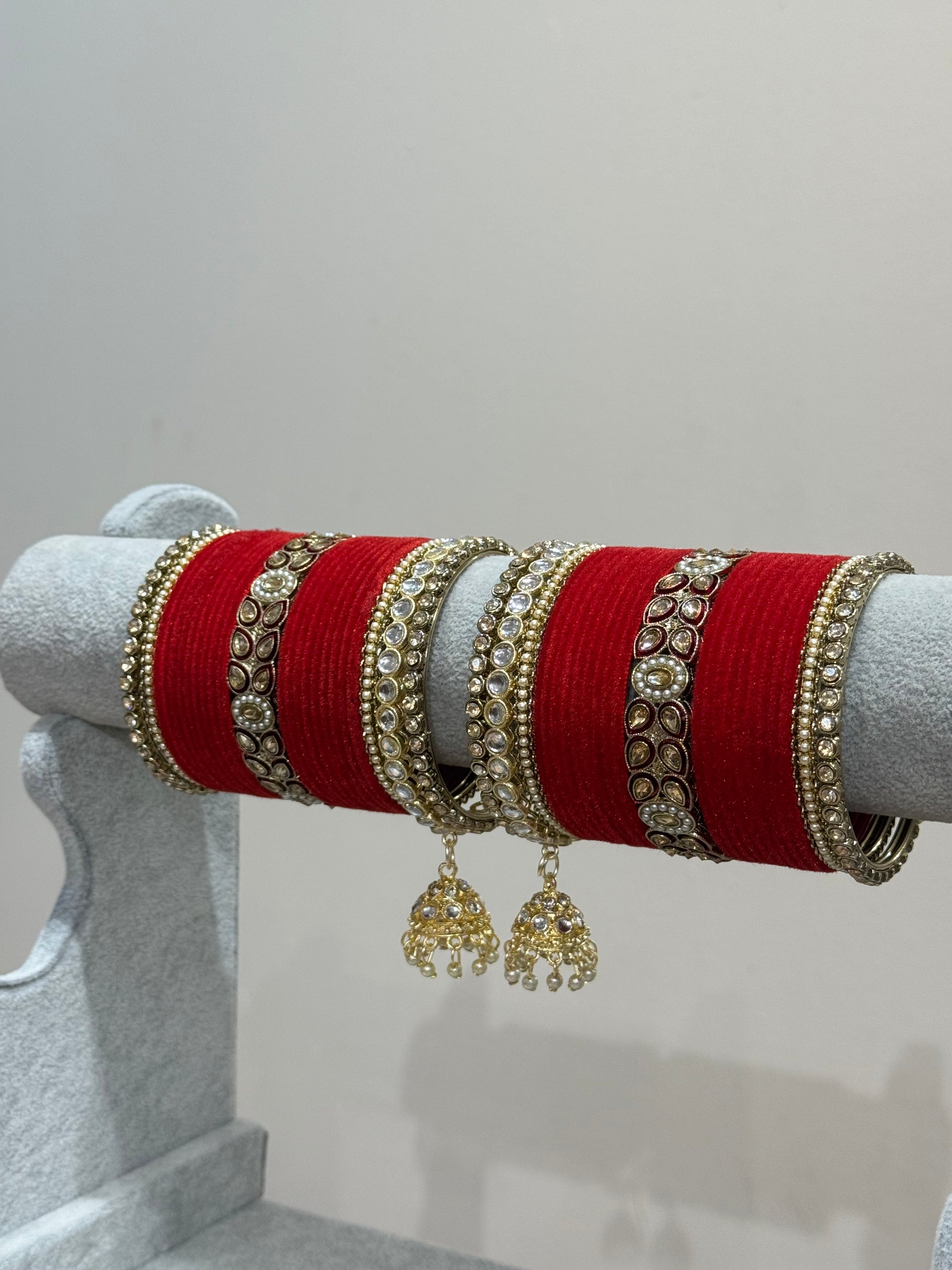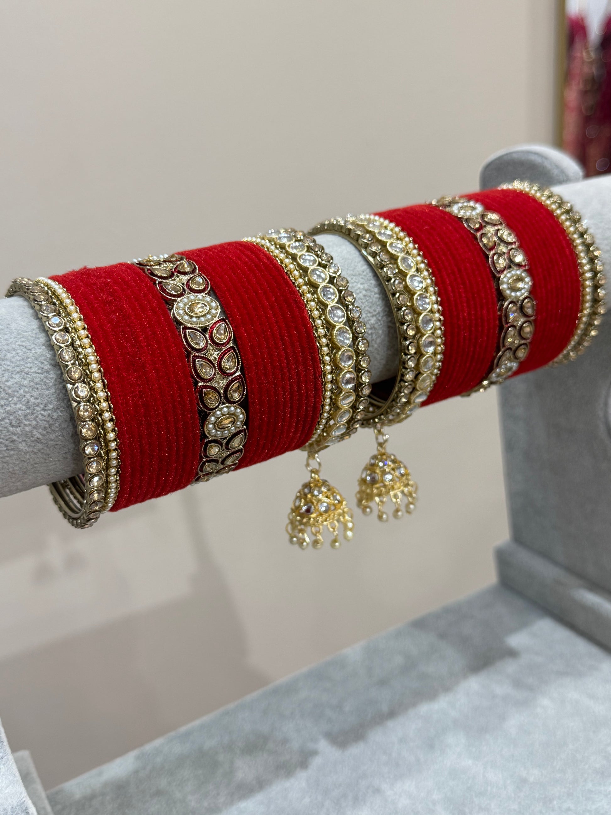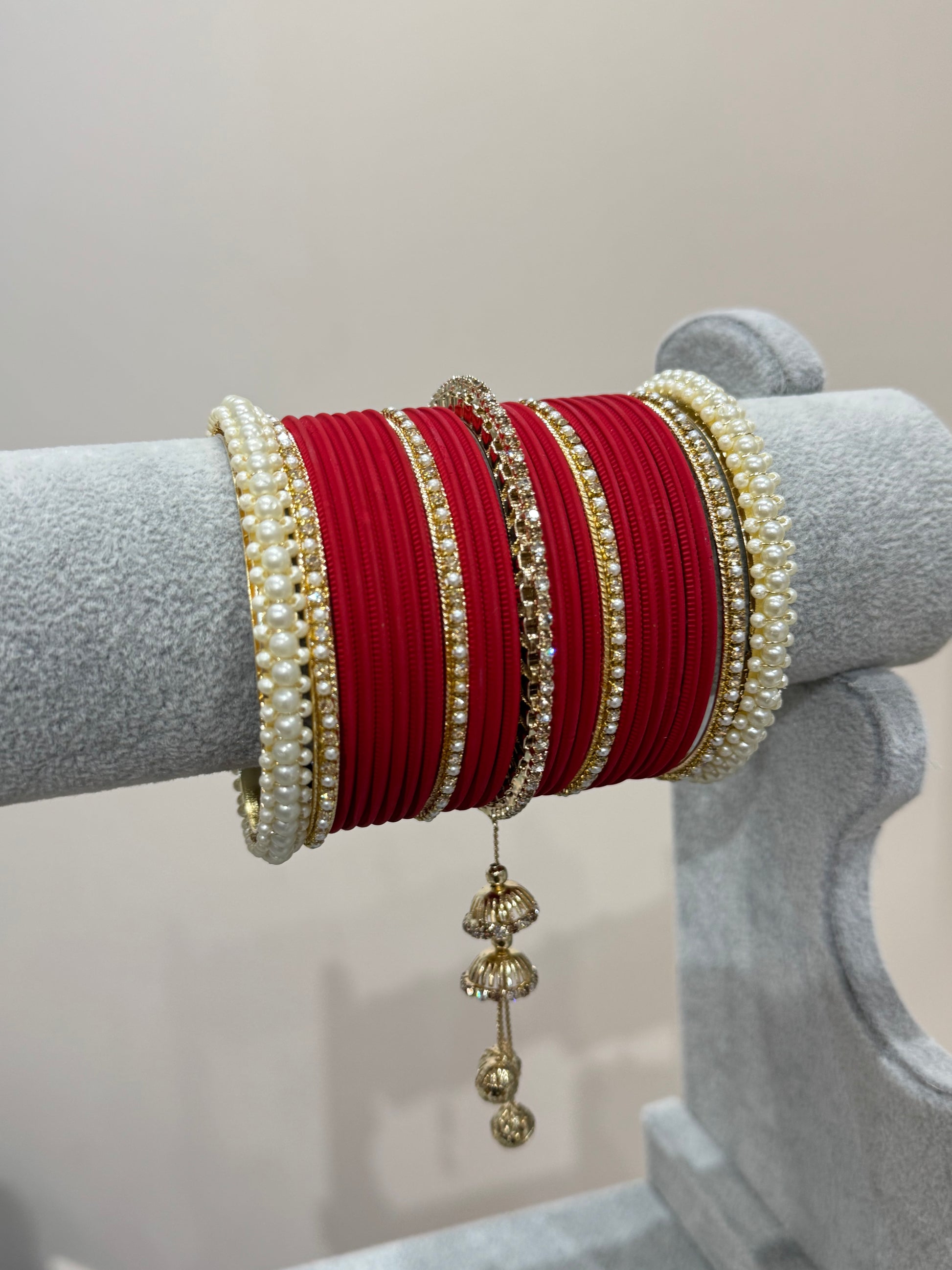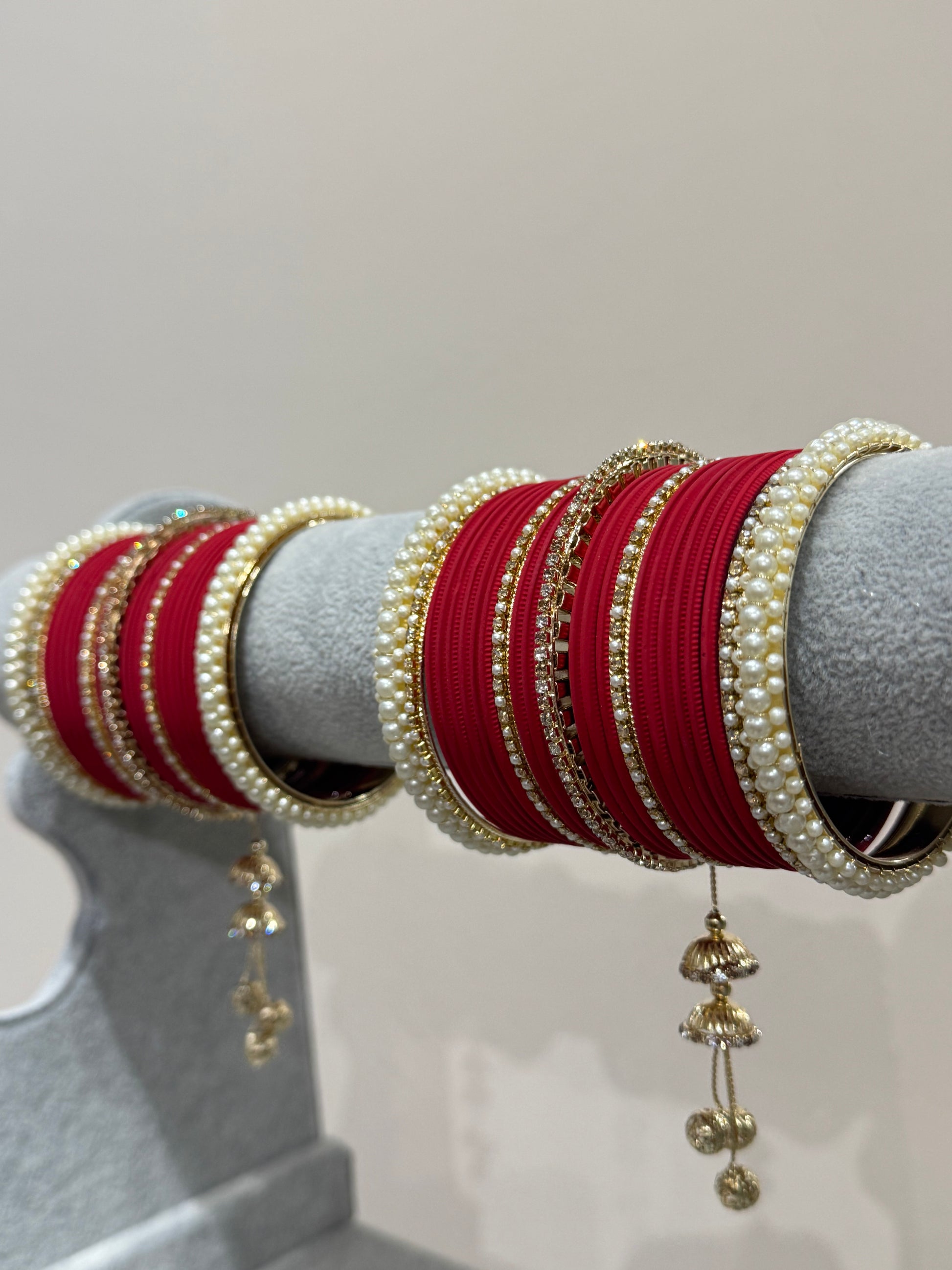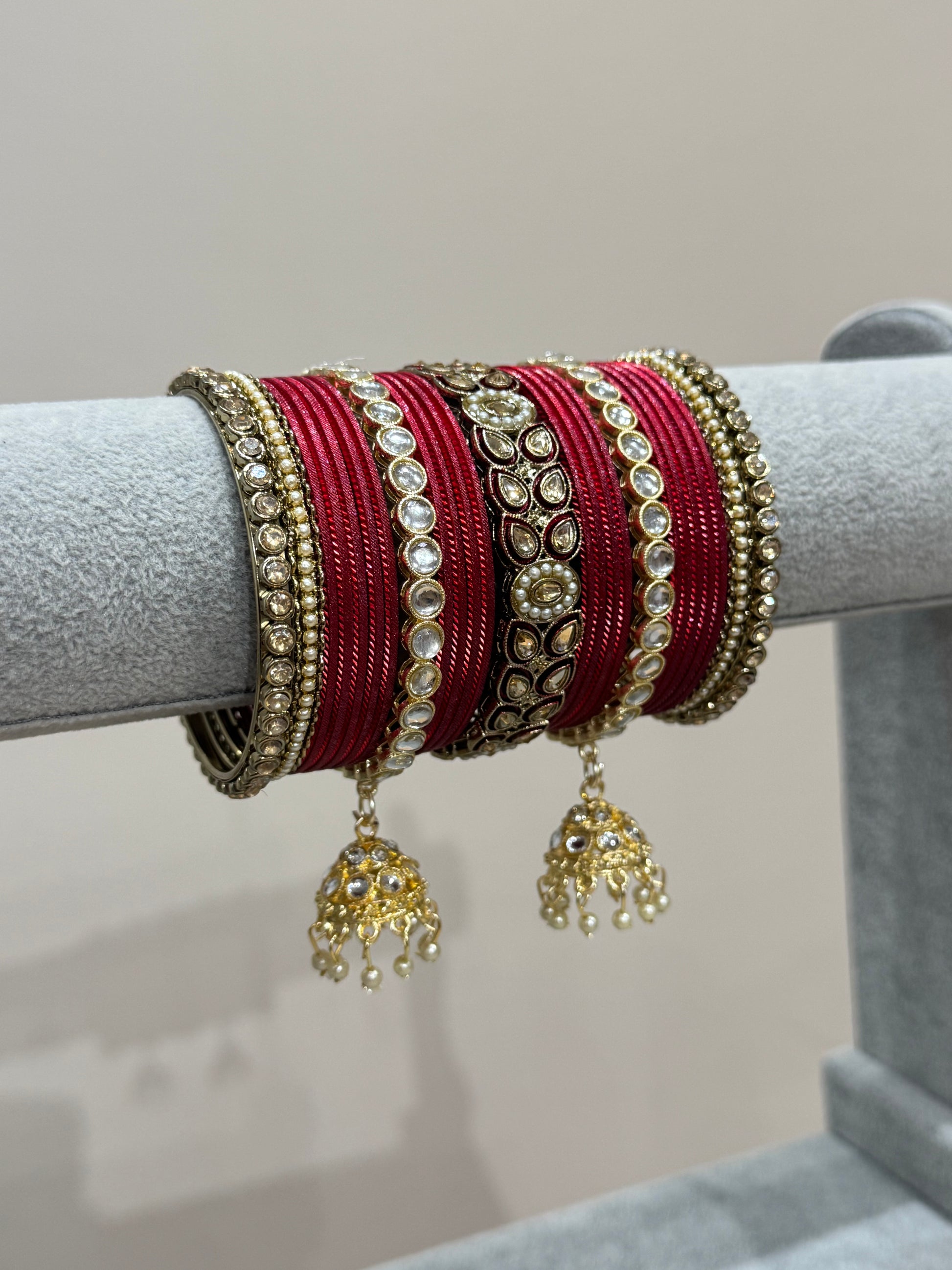 One set of bangles is one displayed until of bangles. Some photographs have 2 sets of bangles for presentation purposes. Unless specified otherwise, the price is for ONE set of of bangles only.
