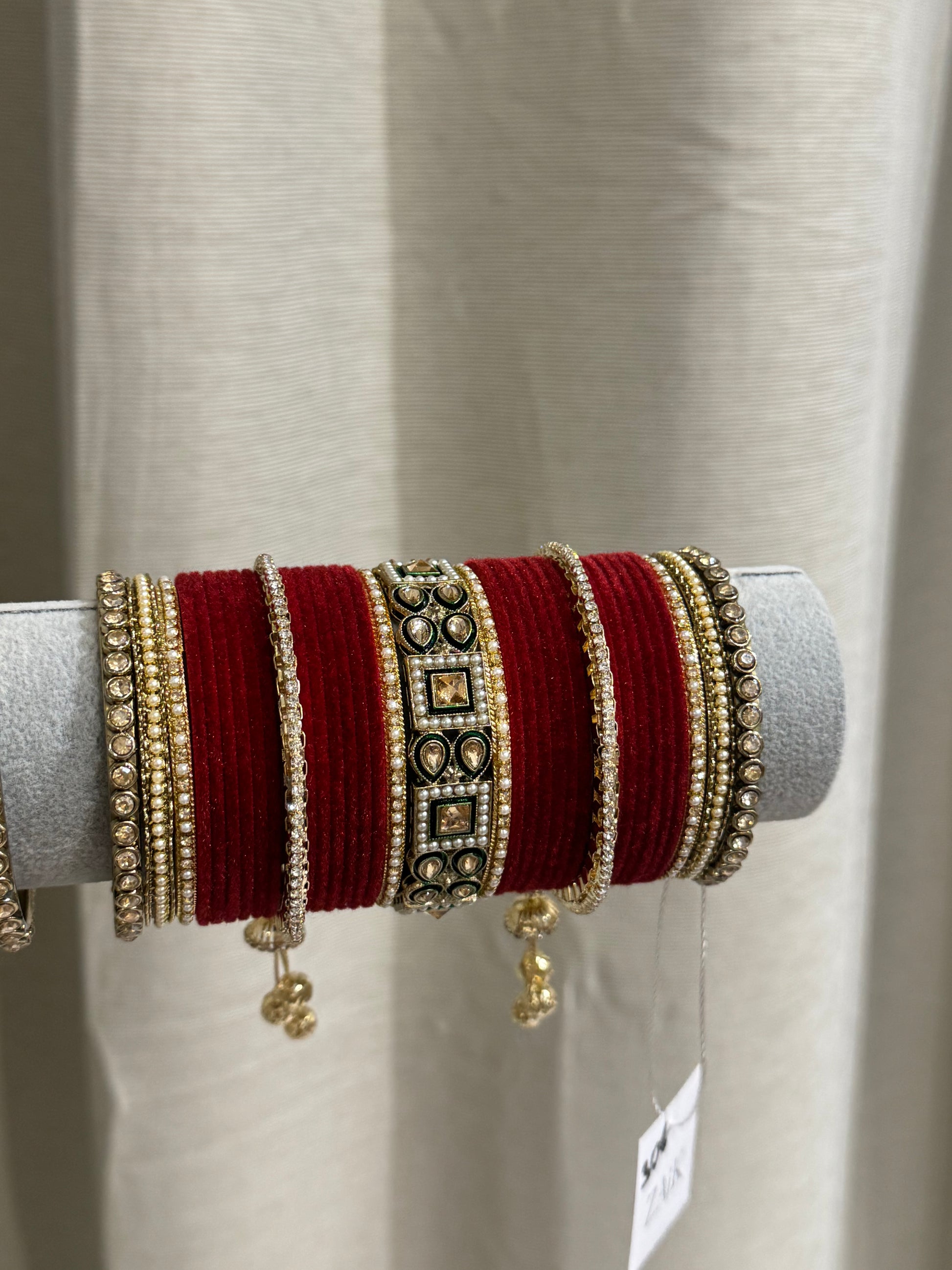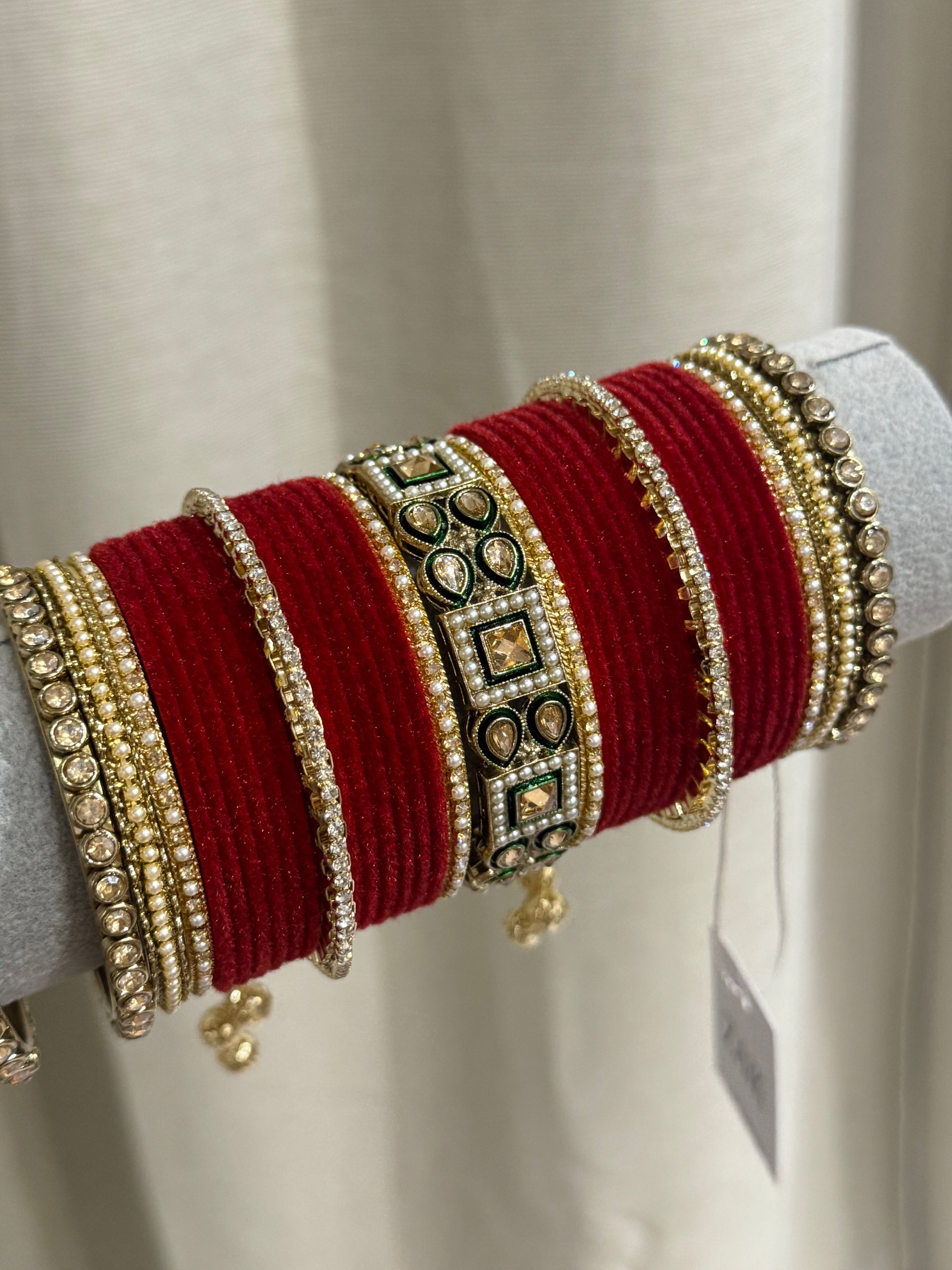 One set of bangles is one displayed until of bangles. Some photographs have 2 sets of bangles for presentation purposes. Unless specified otherwise, the price is for ONE set of of bangles only.