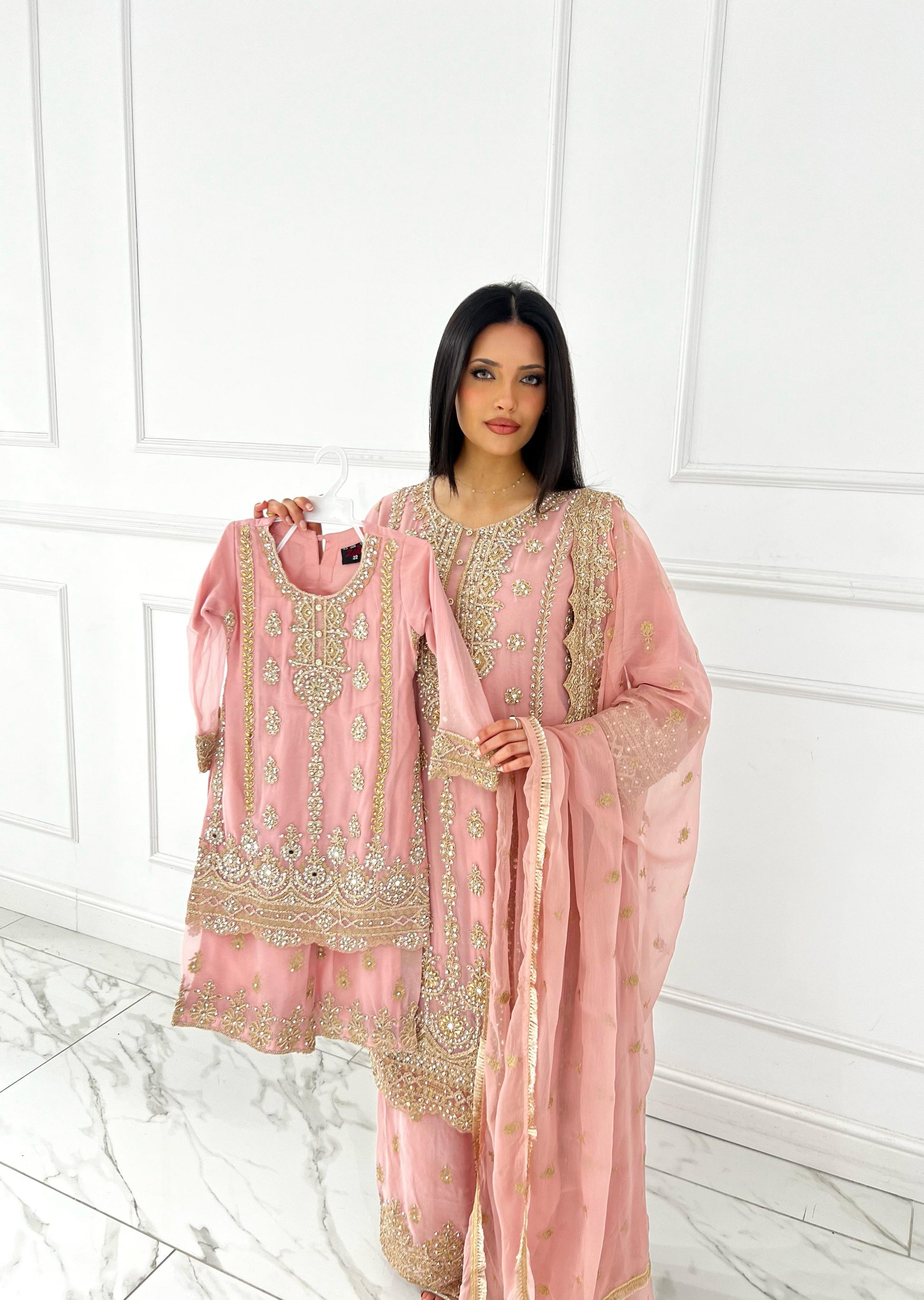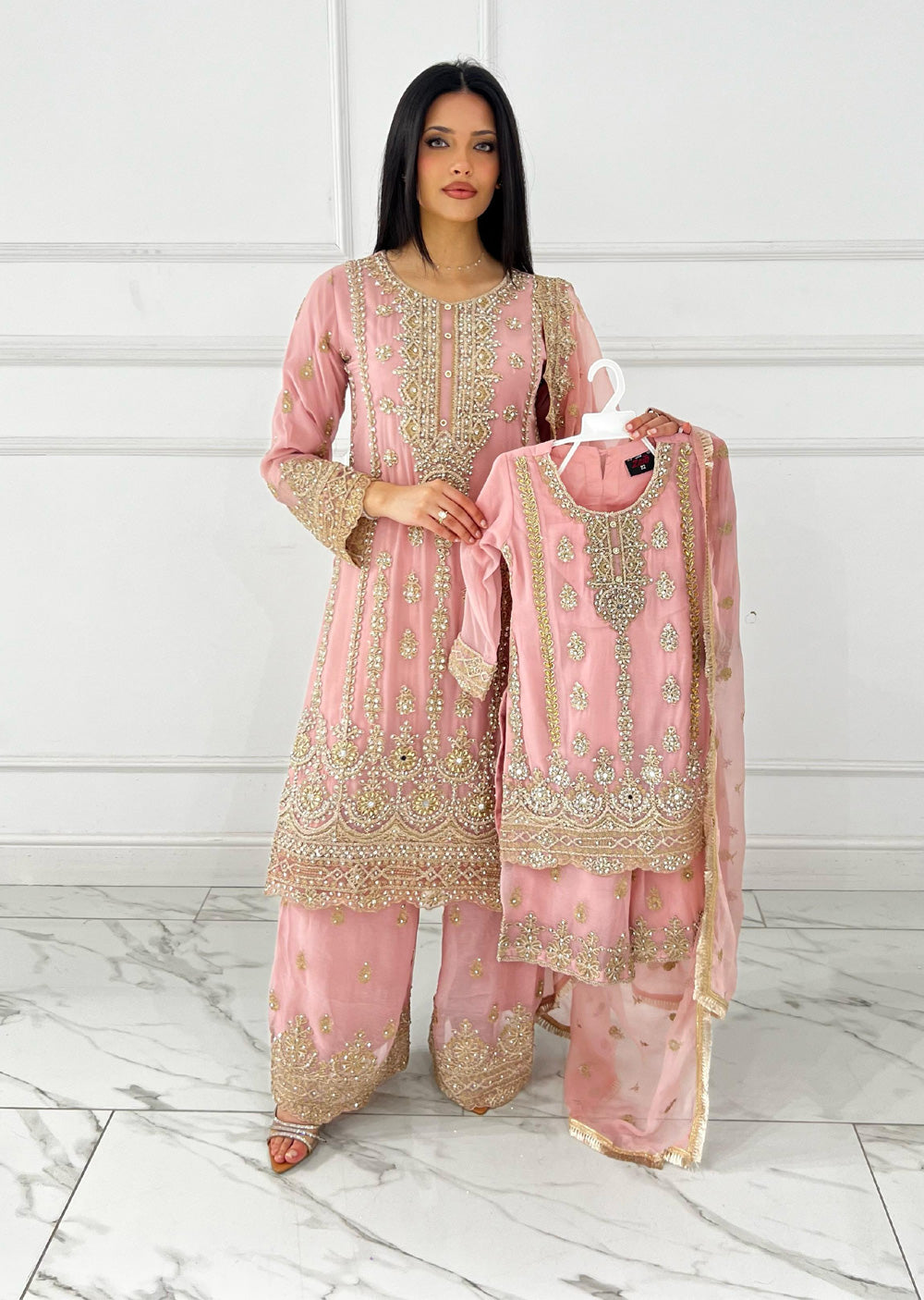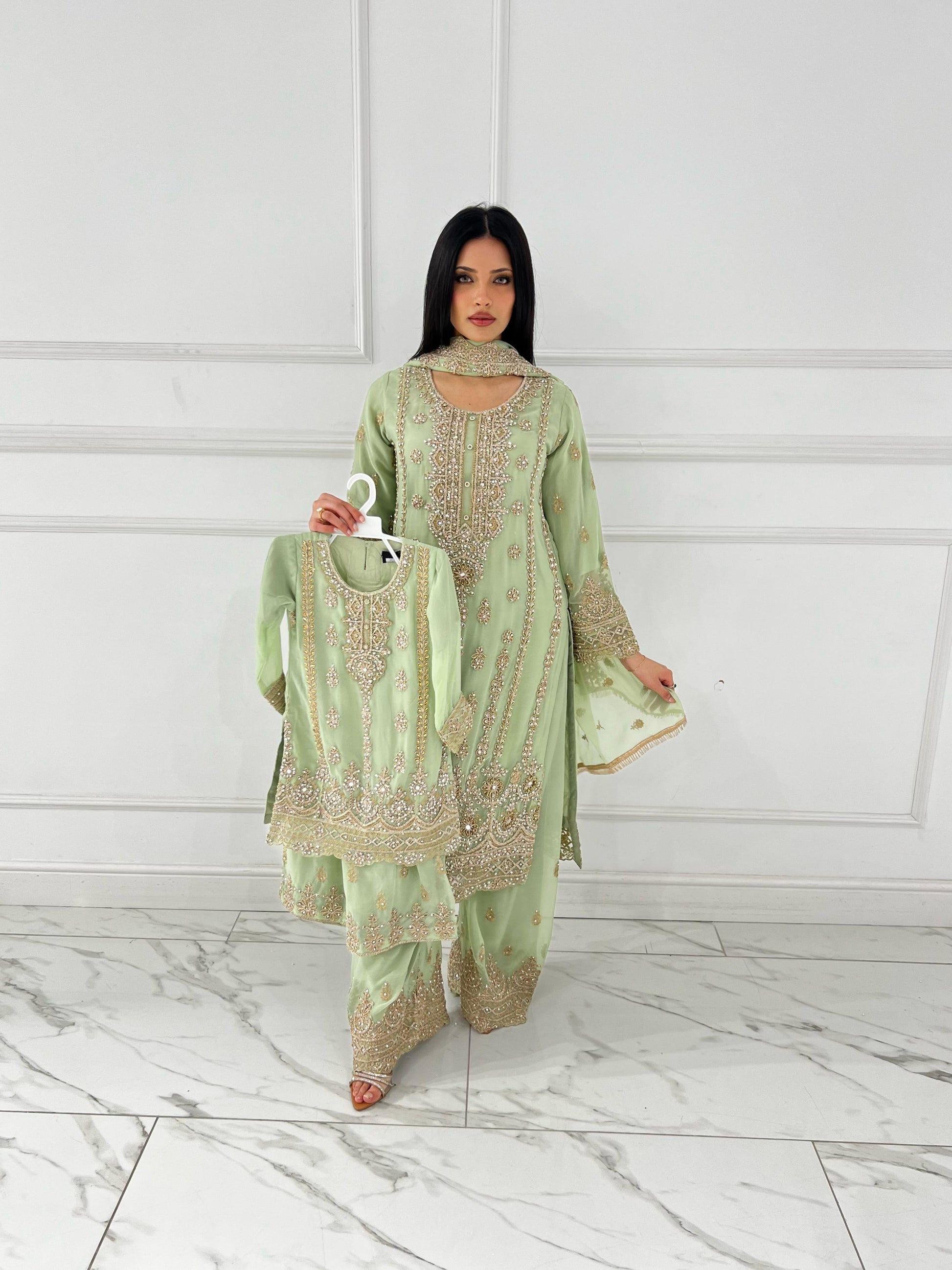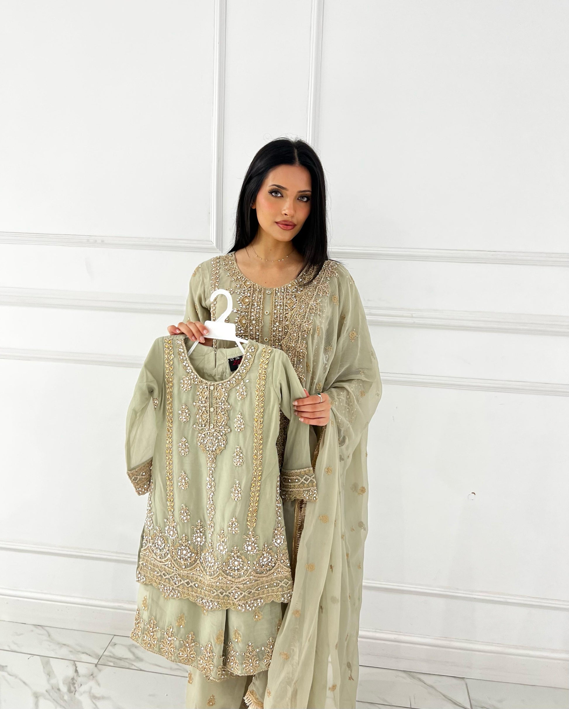 Experience the joy of matching outfits with your little one in our New Chiffon Embroidered Mummy n Me Outfit. Made with lightweight chiffon and adorned with intricate ghotta work, this stunning outfit will make you and your child stand out in any gathering. Perfect for creating unforgettable memories together!